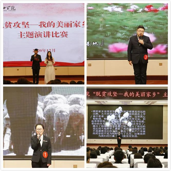 收官之年。為展現(xiàn)家鄉(xiāng)在脫貧攻堅(jiān)推進(jìn)下的巨大變化,謳歌黨的十八大以來脫貧攻堅(jiān)工作所取得的歷史性成就,12月28日,學(xué)院在菁英廳舉辦了“脫貧攻堅(jiān)--我的美麗家鄉(xiāng)”主題演講比賽。比賽由院團(tuán)委主辦,學(xué)生社團(tuán)部協(xié)辦,全院共220余名學(xué)生代表觀賽。