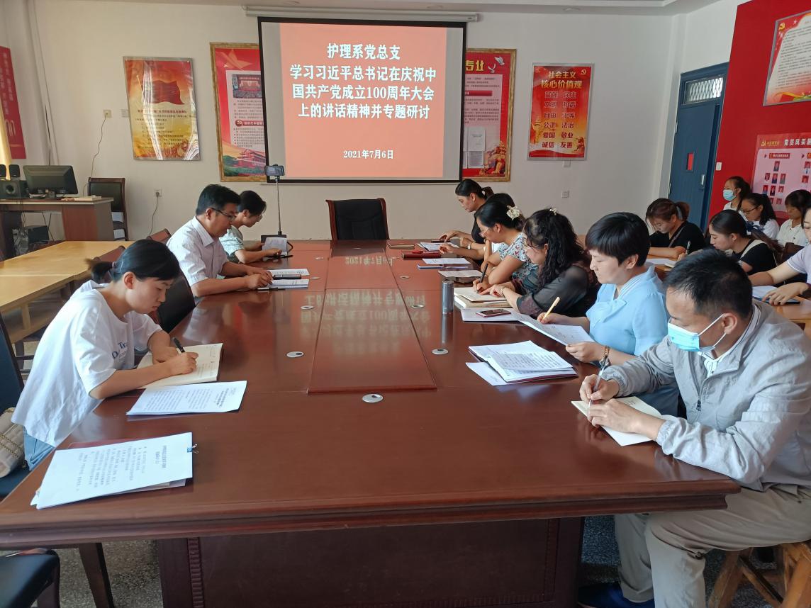 護(hù)理系黨總支專題學(xué)習(xí)領(lǐng)會(huì)習(xí)近平總書記在慶祝中國共產(chǎn)黨成立100周年大會(huì)上的重要講話精神并研討交流