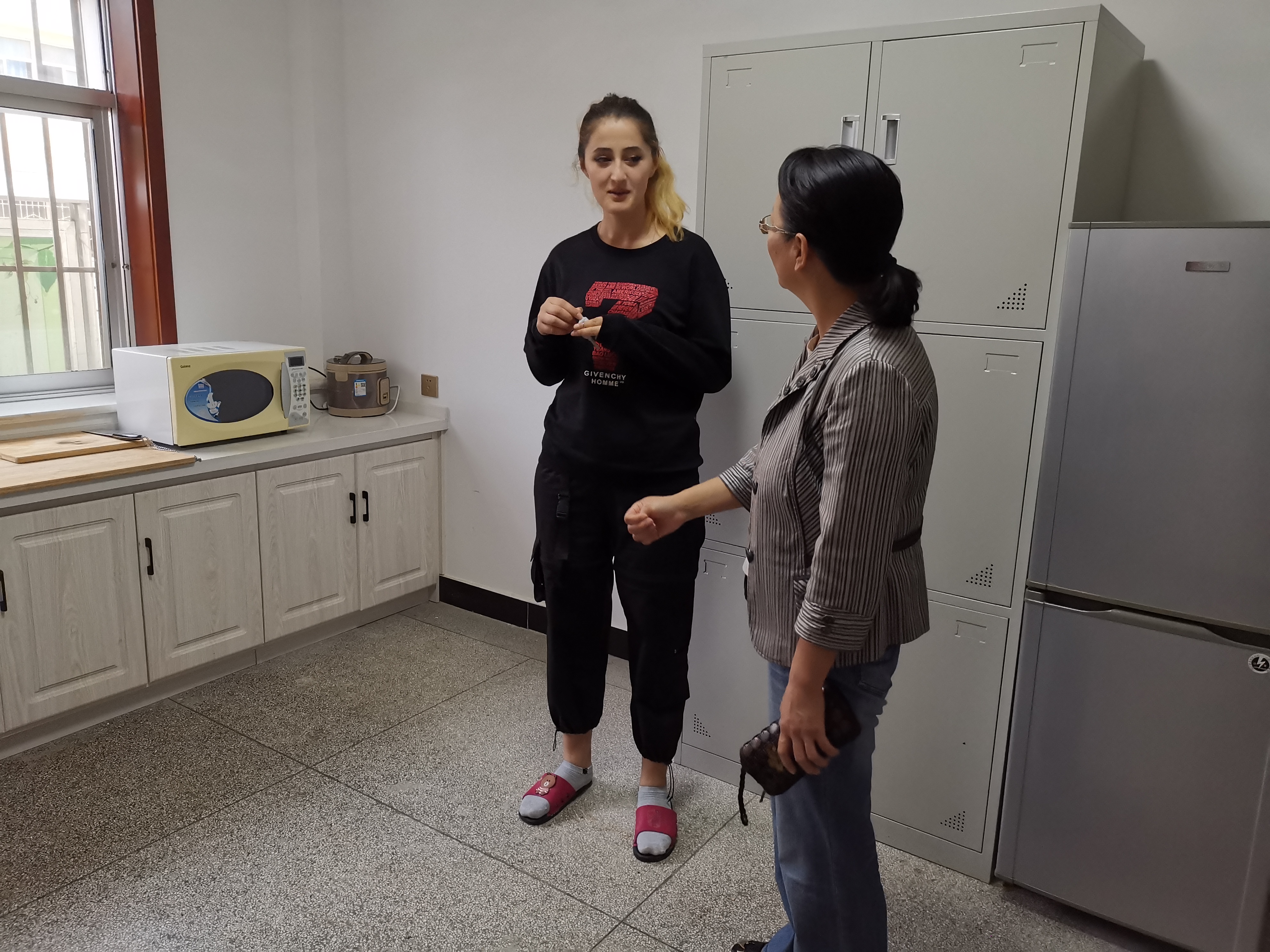 田迎春先后深入2019級(jí)、2021級(jí)來(lái)華留學(xué)生宿舍、廚房,查看、了解留學(xué)生住宿、生活情況,向留學(xué)生送上慰問品。在留學(xué)生宿舍,田迎春與留學(xué)生親切交談,關(guān)切詢問留學(xué)生日常生活、專業(yè)學(xué)習(xí)、漢語(yǔ)學(xué)習(xí)等情況。她向留學(xué)生簡(jiǎn)要介紹了中秋節(jié)、國(guó)慶節(jié)的來(lái)歷、風(fēng)俗及意義,留學(xué)生們對(duì)中國(guó)傳統(tǒng)文化表現(xiàn)出濃厚興趣;她指出,留學(xué)生背井離鄉(xiāng)來(lái)華求學(xué),遇到困難在所難免,但要堅(jiān)定信心,學(xué)院會(huì)盡力滿足留學(xué)生學(xué)習(xí)、生活的需要;她鼓勵(lì)留學(xué)生積極主動(dòng)融入學(xué)院大家庭,廣交朋友,在融入、融合過程中體會(huì)在華學(xué)習(xí)生活的樂趣;她希望留學(xué)生珍惜寶貴的來(lái)華學(xué)習(xí)的機(jī)會(huì),不僅要學(xué)好理論知識(shí),而且要學(xué)好操作技能,不僅要學(xué)好專業(yè)知識(shí),而且要學(xué)好優(yōu)秀中華文化,講好中國(guó)故事,向世界展示真實(shí)的中國(guó),爭(zhēng)做知華友華愛華的留學(xué)生,爭(zhēng)做中國(guó)與世界各國(guó)友好的使者。