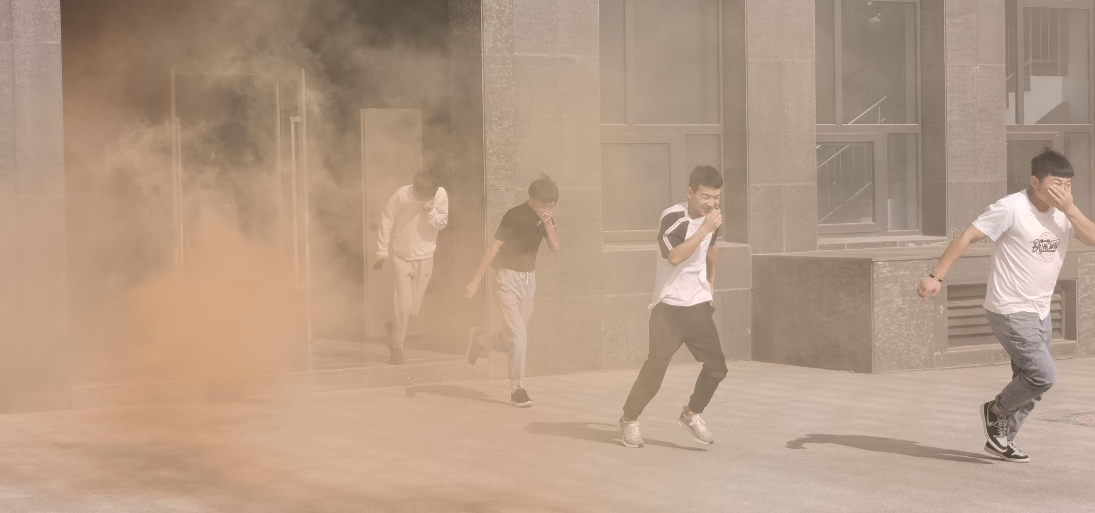 下午4點46分,疏散演練正式開始。隨著消防警報響起,各教學班上課教師立即停止上課組織學生疏散,學生用濕毛巾捂住口鼻,按照逃生路線有序疏散。5分鐘內(nèi)8000多名參演師生全部撤離到安全地帶,演練取得圓滿成功。