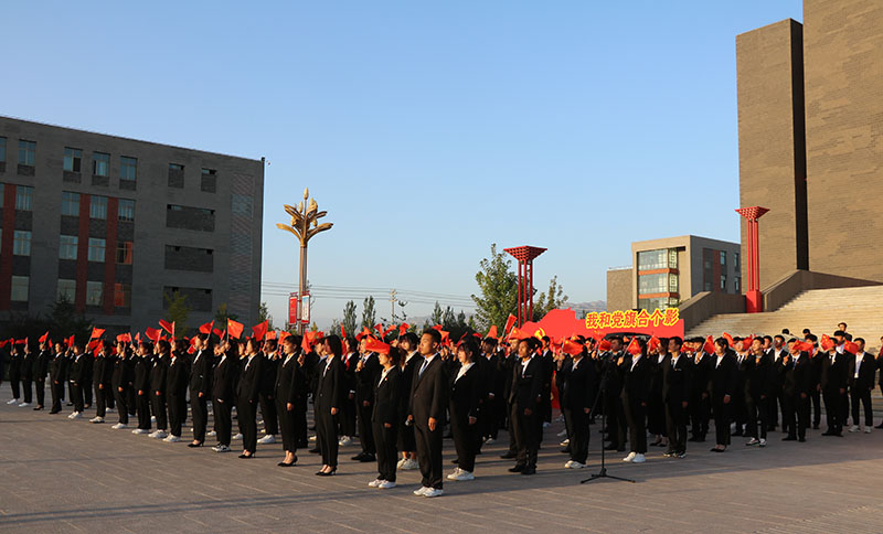 奮斗正當(dāng)時,青春獻(xiàn)給黨!為慶祝新中國成立72周年,深入貫徹落實習(xí)近平總書記在慶祝建黨成立100周年大會上的重要講話精神,引導(dǎo)全院廣大青年大力弘揚以愛國主義為核心的偉大民族精神,10月1日早上,學(xué)院在圖書館前廣場舉辦“請黨放心,強(qiáng)國有我”主題升國旗儀式。學(xué)院全體院領(lǐng)導(dǎo)、中層干部代表、師生代表300余人參加活動。