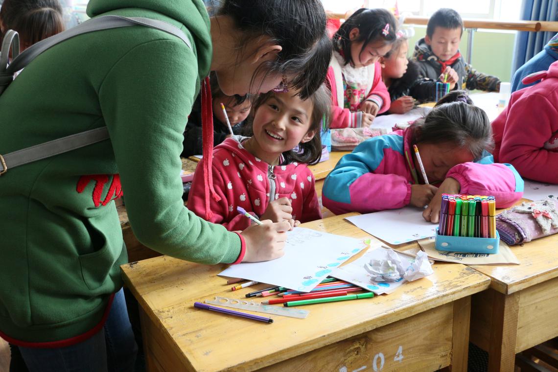 游戲環(huán)節(jié)將此次活動(dòng)一次又一次的推向高潮,伴著一曲“天之大”本次志愿者活動(dòng)落下了帷幕。最后志愿者收集小朋友的心愿卡粘貼在暖心墻上并與四壩中學(xué)的師生合影留念。