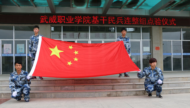 2016年5月5日下午5時(shí),伴隨嘹亮的中華人民共和國(guó)國(guó)歌聲的響起,面對(duì)鮮艷的中華人民共和國(guó)國(guó)旗,武威職業(yè)學(xué)院基干民兵連整組點(diǎn)驗(yàn)儀式在學(xué)院尚德樓北廣場(chǎng)隆重舉行。
