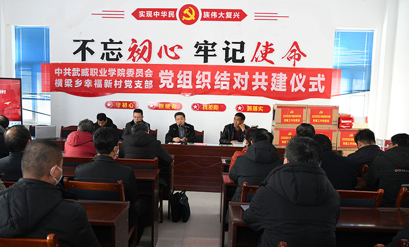 12月11日,學(xué)院黨委與康寧新村、幸福新村黨支部在康寧新村會(huì)議室舉行了黨組織結(jié)對(duì)共建捐贈(zèng)活動(dòng),與2個(gè)村黨支部就結(jié)對(duì)共建工作進(jìn)行了深入交流,捐贈(zèng)了價(jià)值2000元的黨建用品。趙明表示,學(xué)院要發(fā)揮黨組織優(yōu)勢(shì),在康寧新村、幸福新村幫建高質(zhì)量標(biāo)準(zhǔn)化2個(gè)黨員活動(dòng)室,組織學(xué)院黨支部和幫扶村黨支部開展結(jié)對(duì)共建活動(dòng),探索鄉(xiāng)村振興新模式、新方法、新思路,形成可復(fù)制、可推廣的經(jīng)驗(yàn),使“黨建共建”成為鍛煉干部的重要平臺(tái),助力推動(dòng)古浪縣橫梁鄉(xiāng)康寧新村和幸福新村鄉(xiāng)村振興。趙明強(qiáng)調(diào),要進(jìn)一步深化黨建引領(lǐng),將黨建工作融入鄉(xiāng)村振興的全過程,不斷完善“黨建+”模式,組織幫扶干部、駐村干部和幫扶村黨員深入開展黨史學(xué)習(xí)教育,扎實(shí)開展“我為群眾辦實(shí)事”,推進(jìn)學(xué)院黨建與基層黨建水平共同提升,在鄉(xiāng)村振興中切實(shí)發(fā)揮好村黨支部戰(zhàn)斗堡壘作用和黨員先鋒模范作用。2個(gè)幫扶村黨支部書記表達(dá)了感謝,對(duì)共建工作提出建議。