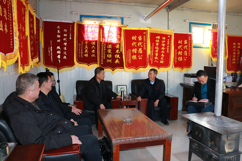 12月21日下午,趙明一行來(lái)到八步沙林場(chǎng)看望了學(xué)院思政課導(dǎo)師、全國(guó)勞動(dòng)模范郭萬(wàn)剛同志,趙明介紹了學(xué)院與八步沙林場(chǎng)剛剛共同獲得的首批甘肅省職業(yè)教育紅色文化研學(xué)旅行示范聯(lián)合基地,并邀請(qǐng)郭萬(wàn)剛等治沙造林模范近期來(lái)校為師生做思政報(bào)告。趙明表示,學(xué)院將學(xué)習(xí)道德模范,大力弘揚(yáng)八步沙六老漢“困難面前不低頭、敢把沙漠變綠洲的新時(shí)代武威精神”,進(jìn)一步加強(qiáng)師生思想政治教育,教育廣大師生堅(jiān)定理想信念、厚植愛國(guó)情懷、增強(qiáng)責(zé)任擔(dān)當(dāng),為全面建設(shè)社會(huì)主義現(xiàn)代化國(guó)家,實(shí)現(xiàn)中華民族偉大復(fù)興貢獻(xiàn)力量。