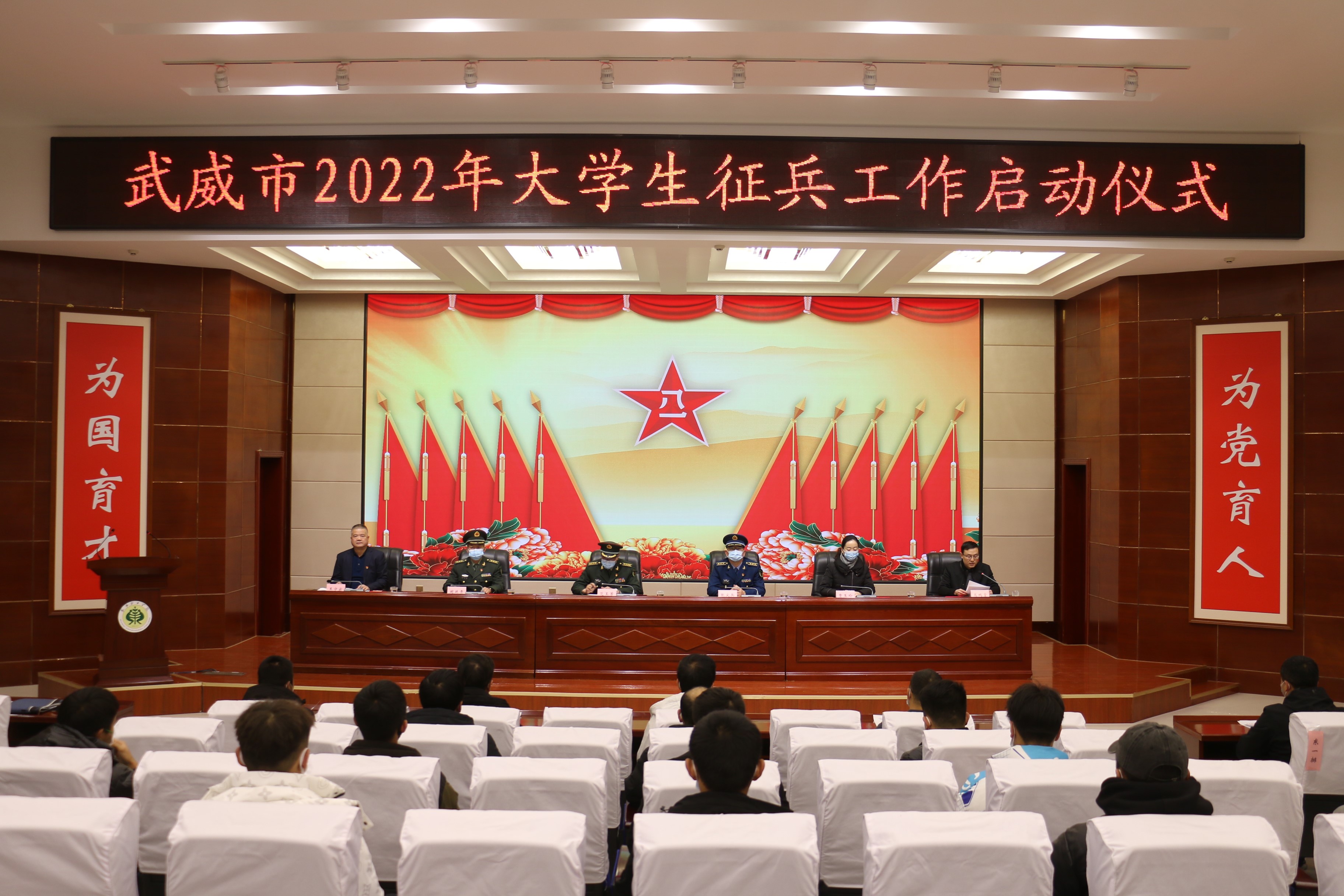 12月29日下午,武威市2022年大學(xué)生征兵工作啟動(dòng)儀式在我院舉辦。武威軍分區(qū)司令員范玉芳、武威軍分區(qū)動(dòng)員處處長張尖兵、武威市教育局副局長賈玉玲、涼州區(qū)人武部部長闞延貴,學(xué)院黨委委員、副院長王守云出席會(huì)議。學(xué)院各院系輔導(dǎo)員、2021年退役復(fù)學(xué)大學(xué)生代表和應(yīng)征報(bào)名學(xué)生代表參加了會(huì)議。會(huì)議由學(xué)生工作處負(fù)責(zé)人高鵬堂主持。會(huì)議采取線下進(jìn)行和線上同步直播的方式召開。