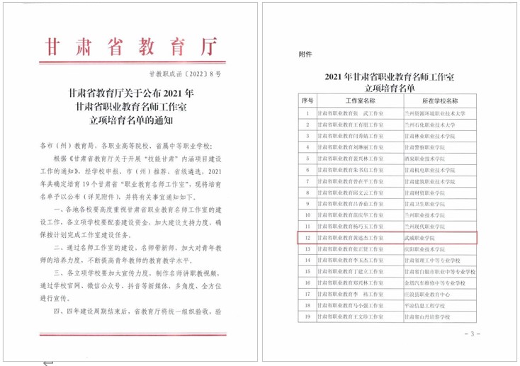 中科低碳新能源技術(shù)學(xué)院黃述杰負責的“甘肅省職業(yè)教育黃述杰工作室”獲評甘肅省職業(yè)教育名師工作室。