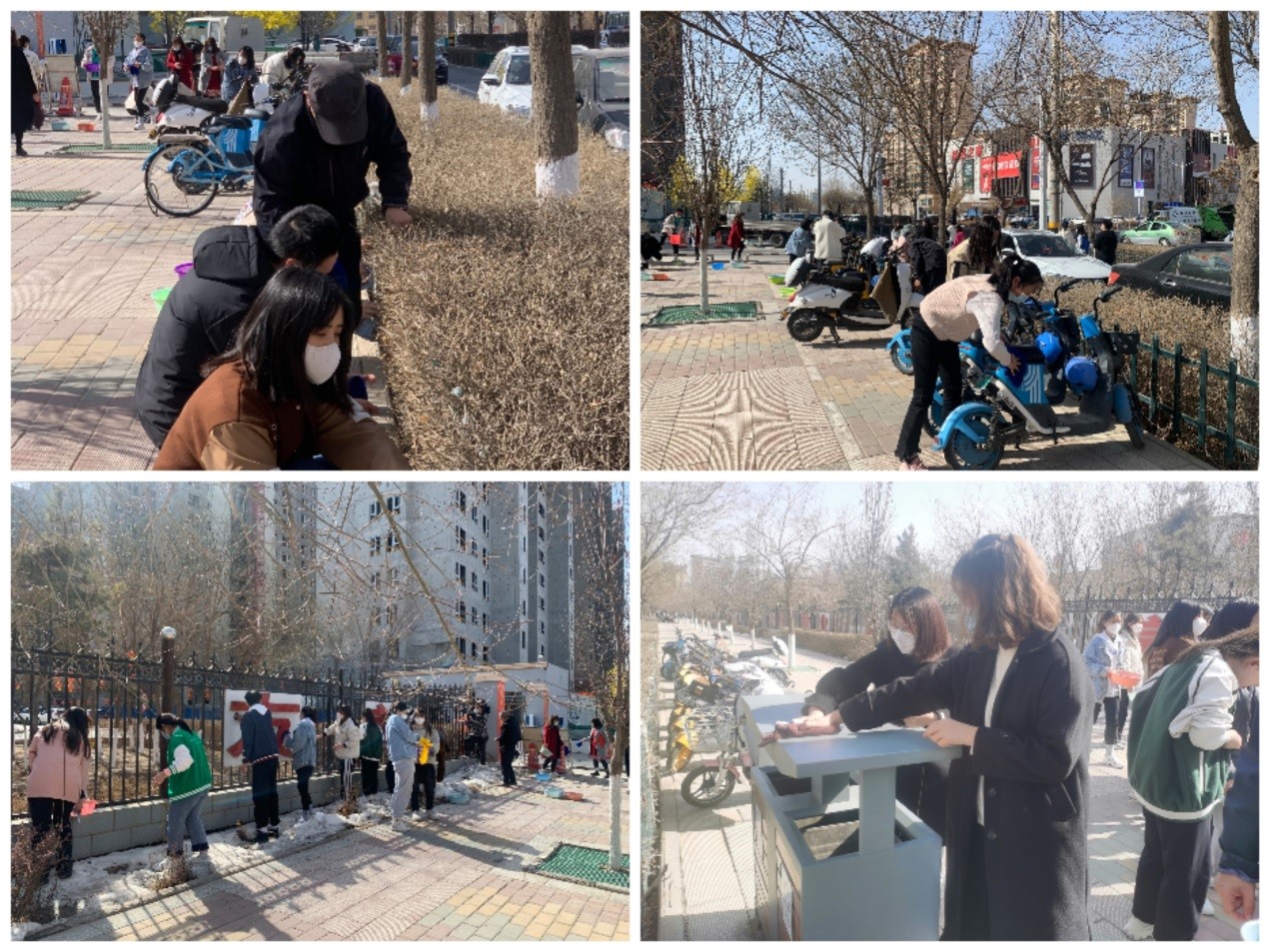 志愿者們來(lái)到學(xué)院北大門(mén)前學(xué)府路與皇臺(tái)路交叉十字至小北門(mén)道路兩側(cè),在主干道擦洗綠化帶隔離欄、校園柵欄、展示牌、垃圾箱,擺放共享單車(chē),打掃衛(wèi)生,開(kāi)展學(xué)雷鋒志愿服務(wù)主題活動(dòng)。