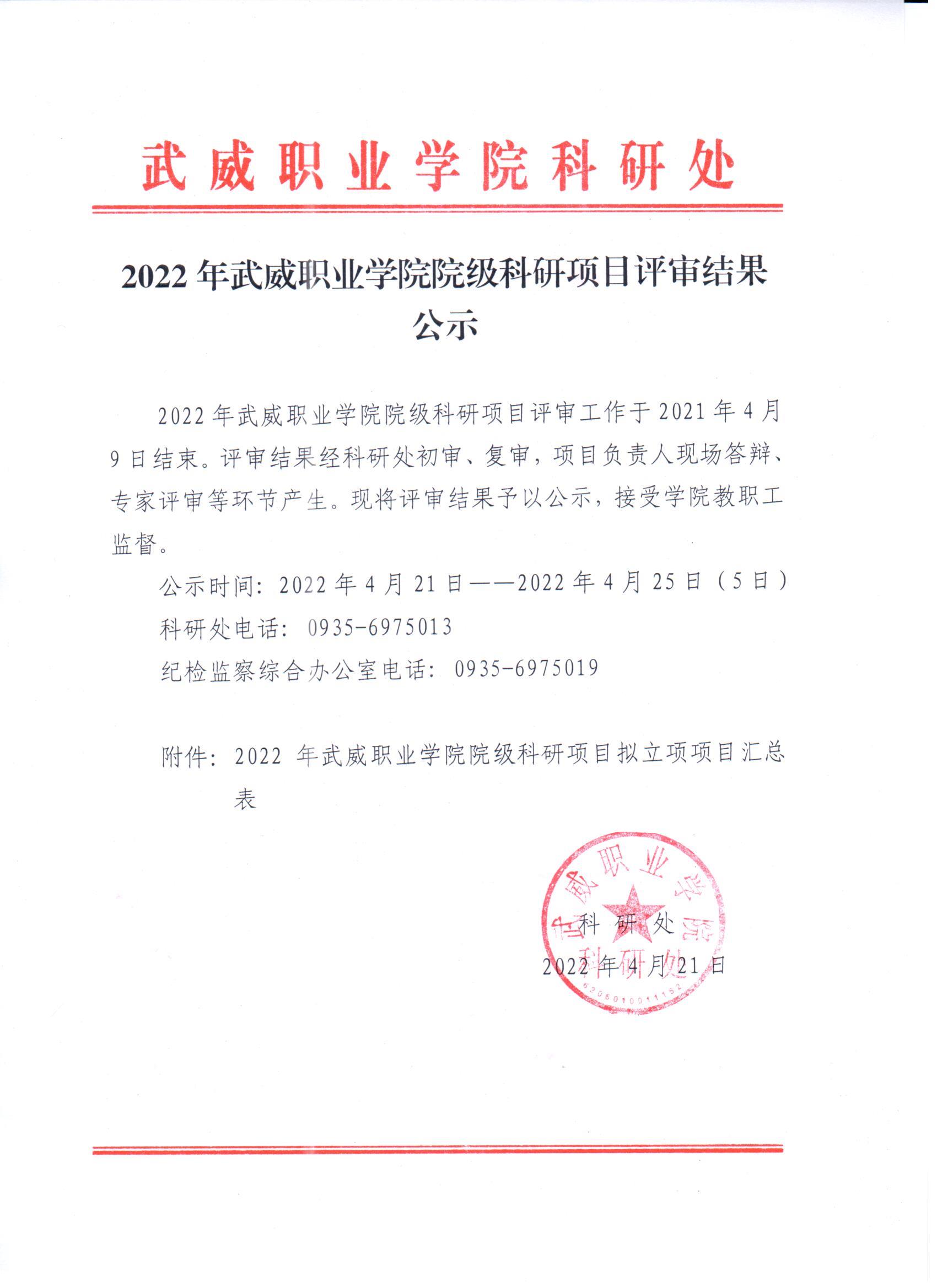 2022年武威職業(yè)學(xué)院院級科研項(xiàng)目評審結(jié)果公示