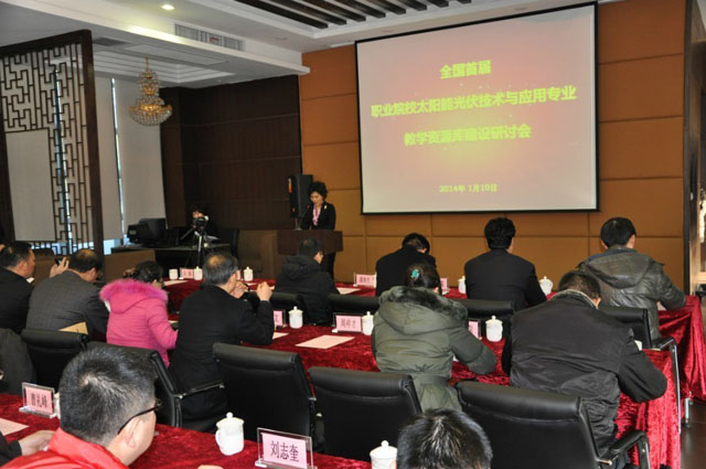 在研討會上,來自職業(yè)院校領導及光伏專業(yè)的專家教授分別對專業(yè)教學資源庫的建設提出了各自的意見及建議。中國職教學會校企合作工作委員會主任潘海生發(fā)表了重要講話。職教聯(lián)盟秘書長陳建民就聯(lián)盟2013年度工作進行了總結,并對2014年度工作進行了規(guī)劃。無錫科技職業(yè)學院的曹建林教授就專業(yè)建設服務區(qū)域經濟進行了深入淺出的分析。蘇州職業(yè)大學的曹豐文教授提出了對于教學資源庫建設目標與思路的意見與看法。無錫尚德公司副總裁朱景兵博士與在座的與會人士交流了怎樣對接企業(yè)培養(yǎng)技能人才的經驗。