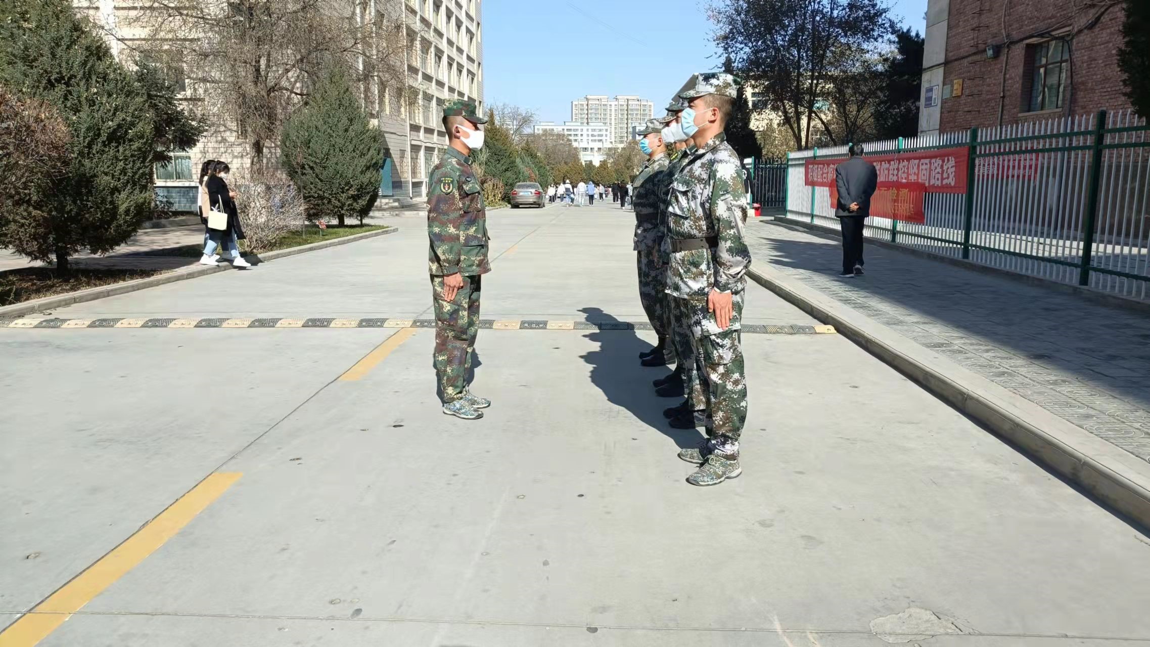 退伍不褪色,戰(zhàn)疫顯擔(dān)當(dāng)。自我省新冠肺炎疫情發(fā)生后,全院上下齊心協(xié)力共同戰(zhàn)“疫”,學(xué)院的11名退役大學(xué)生士兵也積極響應(yīng)號(hào)召,主動(dòng)請(qǐng)戰(zhàn)投身抗疫一線,在校園維護(hù)學(xué)生健康安全崗位上堅(jiān)守,不畏嚴(yán)寒,認(rèn)真負(fù)責(zé),全力守護(hù)校園平安,為打贏疫情防控阻擊戰(zhàn)貢獻(xiàn)自己的力量,以實(shí)際行動(dòng)踐行了“抗疫有我,沖鋒在前,堅(jiān)持到底,永不后退”的錚錚誓言。