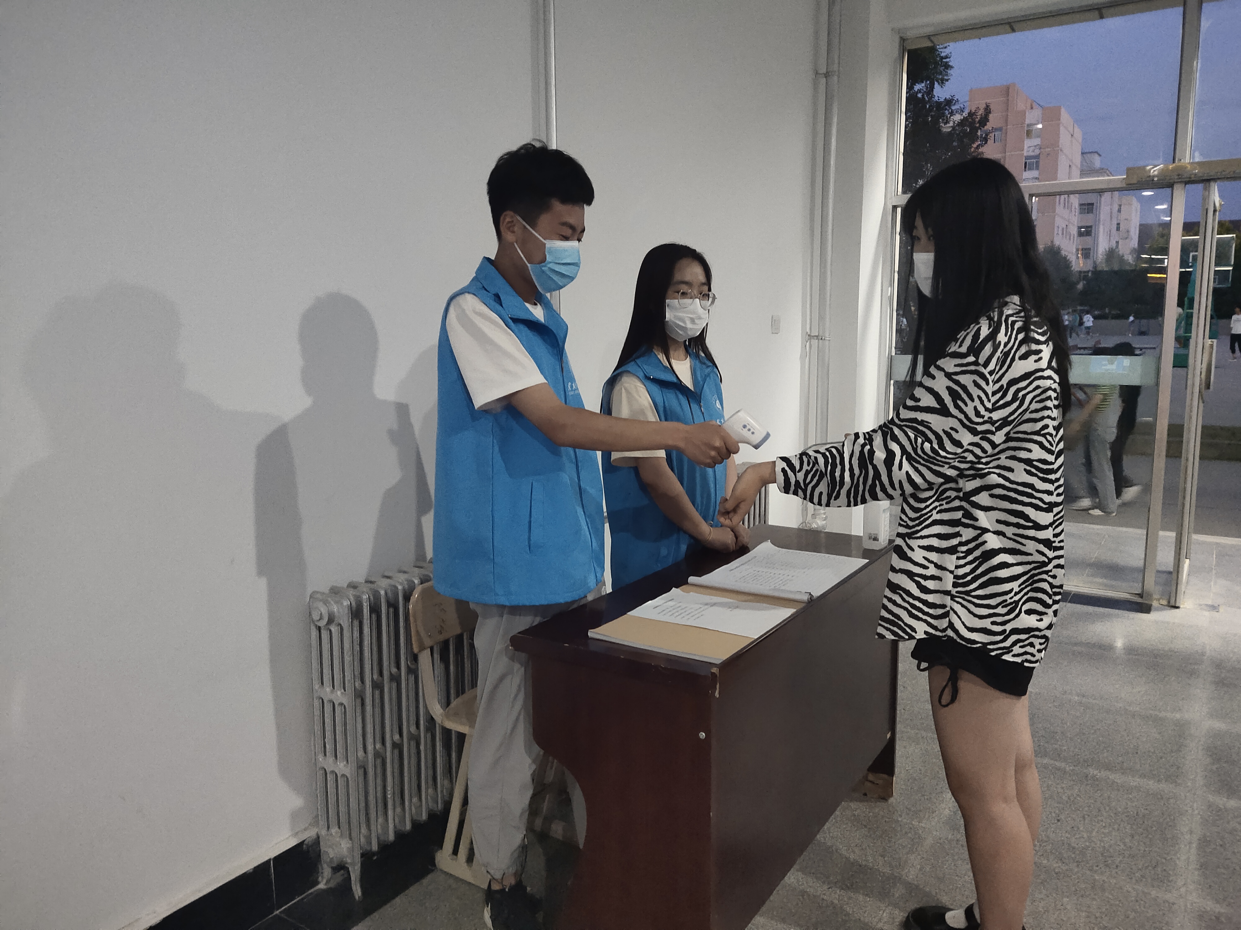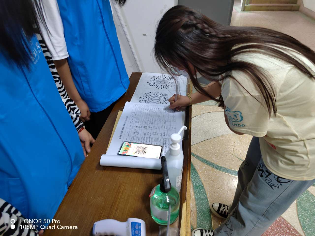 “您好,請(qǐng)出示一下您的健康碼、行程碼和核酸檢測(cè)證明,謝謝配合……”“您好,請(qǐng)?jiān)谶@邊做一下登記,謝謝配合?!蔽以嚎挂咧驹刚叻?wù)隊(duì),在食堂門口,水房門口,宿舍樓,教學(xué)樓門口,志愿者們身穿“紅馬甲”,以所在學(xué)院為單元按照疫情期間門禁管理要求開(kāi)展“疫情防控值班”志愿服務(wù)活動(dòng),凡來(lái)訪者一律要求戴口罩,亮健康碼,行程碼,測(cè)量體溫正常后方可通行。