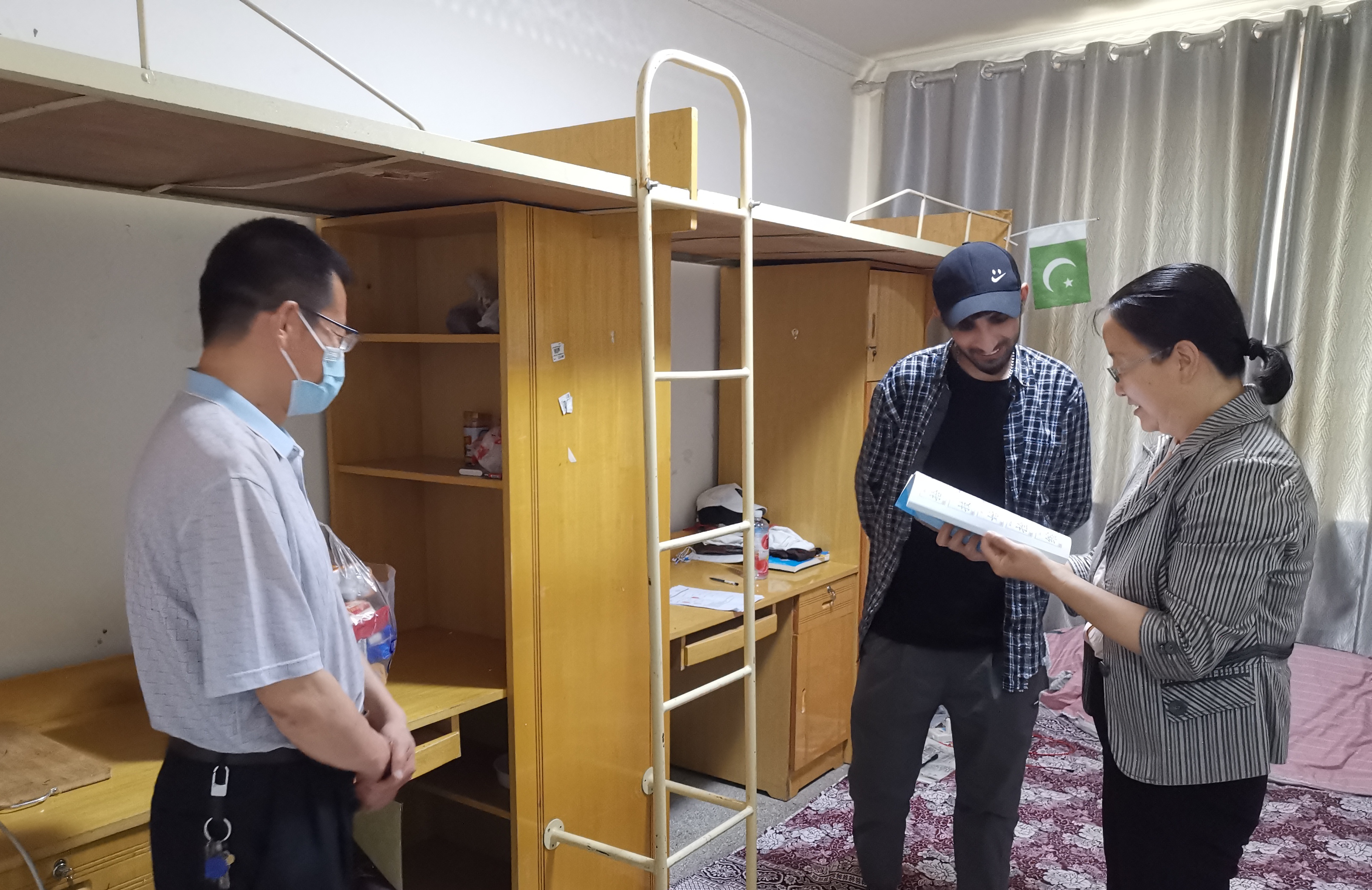 為使學(xué)校國際學(xué)生體驗(yàn)端午民俗文化,感受中華民族傳統(tǒng),增進(jìn)中外師生情感,促進(jìn)國際學(xué)生“知華友華”,6月2日,在中華民族傳統(tǒng)節(jié)日端午節(jié)來臨前夕,學(xué)校黨委委員、副校長田迎春前往國際學(xué)生公寓宿舍,開展國際學(xué)生端午節(jié)走訪慰問活動(dòng),為他們送上溫暖的節(jié)日祝福。國際交流與合作處工作人員、國際學(xué)生輔導(dǎo)員等相關(guān)人員參加走訪慰問活動(dòng)。