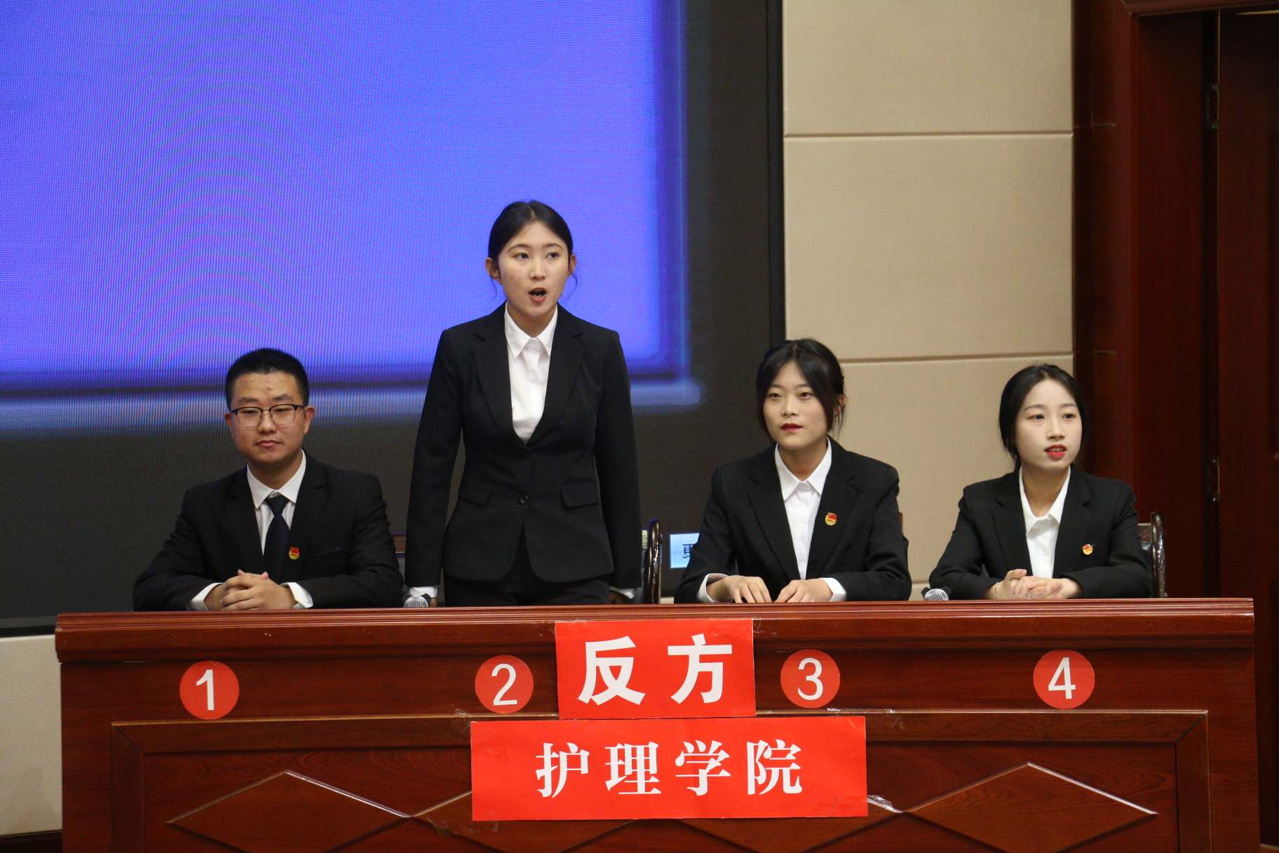 經(jīng)過11場次的比賽,藥學院代表隊和護理學院代表隊進入最后決賽。決賽現(xiàn)場,正反雙方針對誠信主要靠“他律”還是主要靠“自律”拉開激烈交戰(zhàn)。雙方辯手圍繞辯題你來我往、侃侃而談、針鋒相對,卻不失風度;立論階段,旁征博引,攻辯階段雙方辯手“激烈廝殺”;自由辯論環(huán)節(jié),辯論雙方的金句妙言、據(jù)理力爭、滔滔不絕將比賽氣氛推向高潮,贏得在場聽眾的陣陣掌聲。