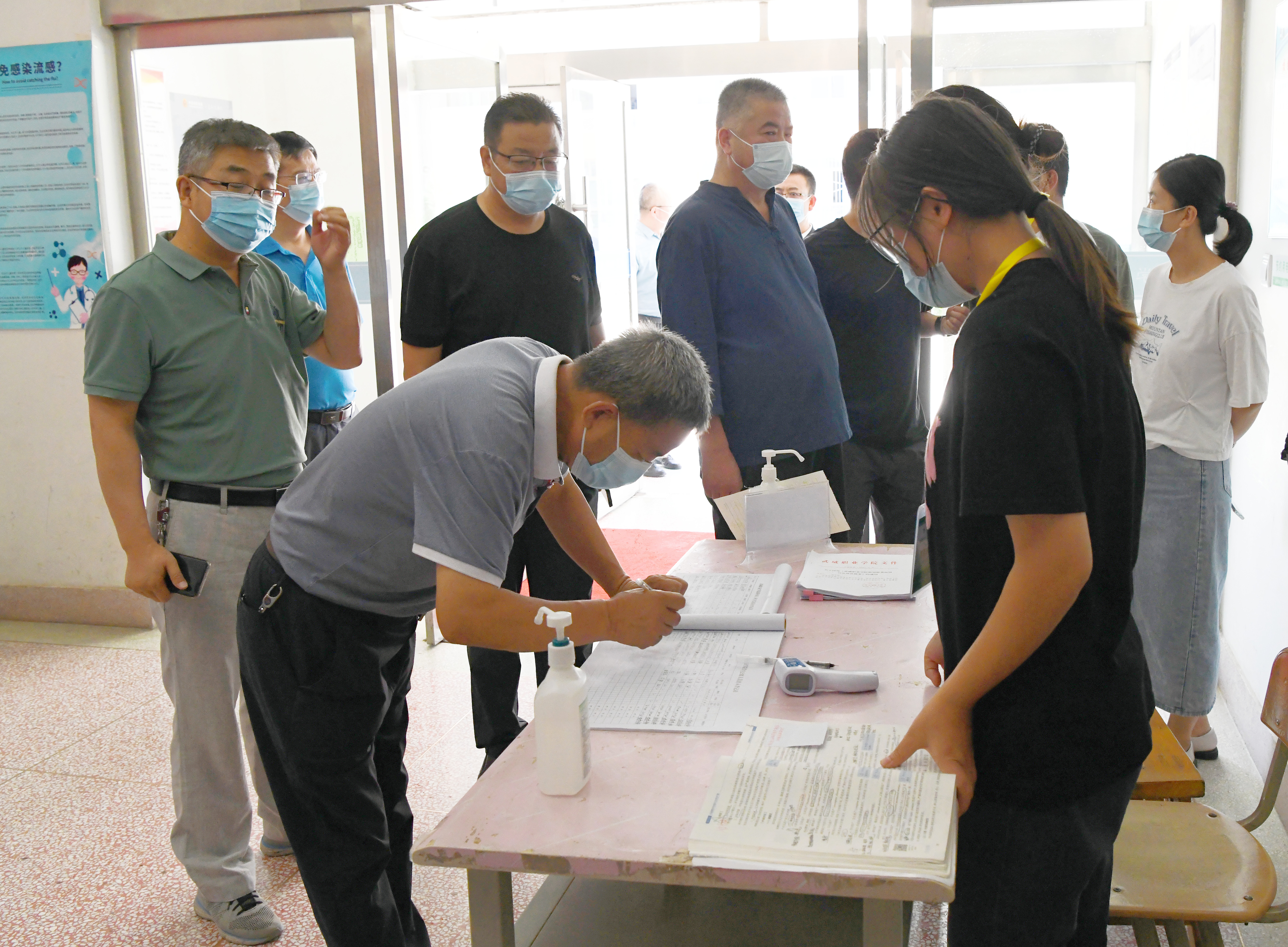 7月20日上午,學(xué)校黨委書記、校長趙明,副校長王永緒,紀(jì)委書記、監(jiān)察專員陳曉煜,副校長張開禮、王守云帶領(lǐng)學(xué)校辦公室、宣傳統(tǒng)戰(zhàn)部、紀(jì)檢監(jiān)察綜合室、學(xué)生工作處、后勤處、安全保衛(wèi)處和相關(guān)二級學(xué)院負(fù)責(zé)人深入學(xué)校東大門、1號餐廳、超市、學(xué)生公寓、核酸檢測點(diǎn)等地,實(shí)地檢查指導(dǎo)學(xué)校疫情防控工作。