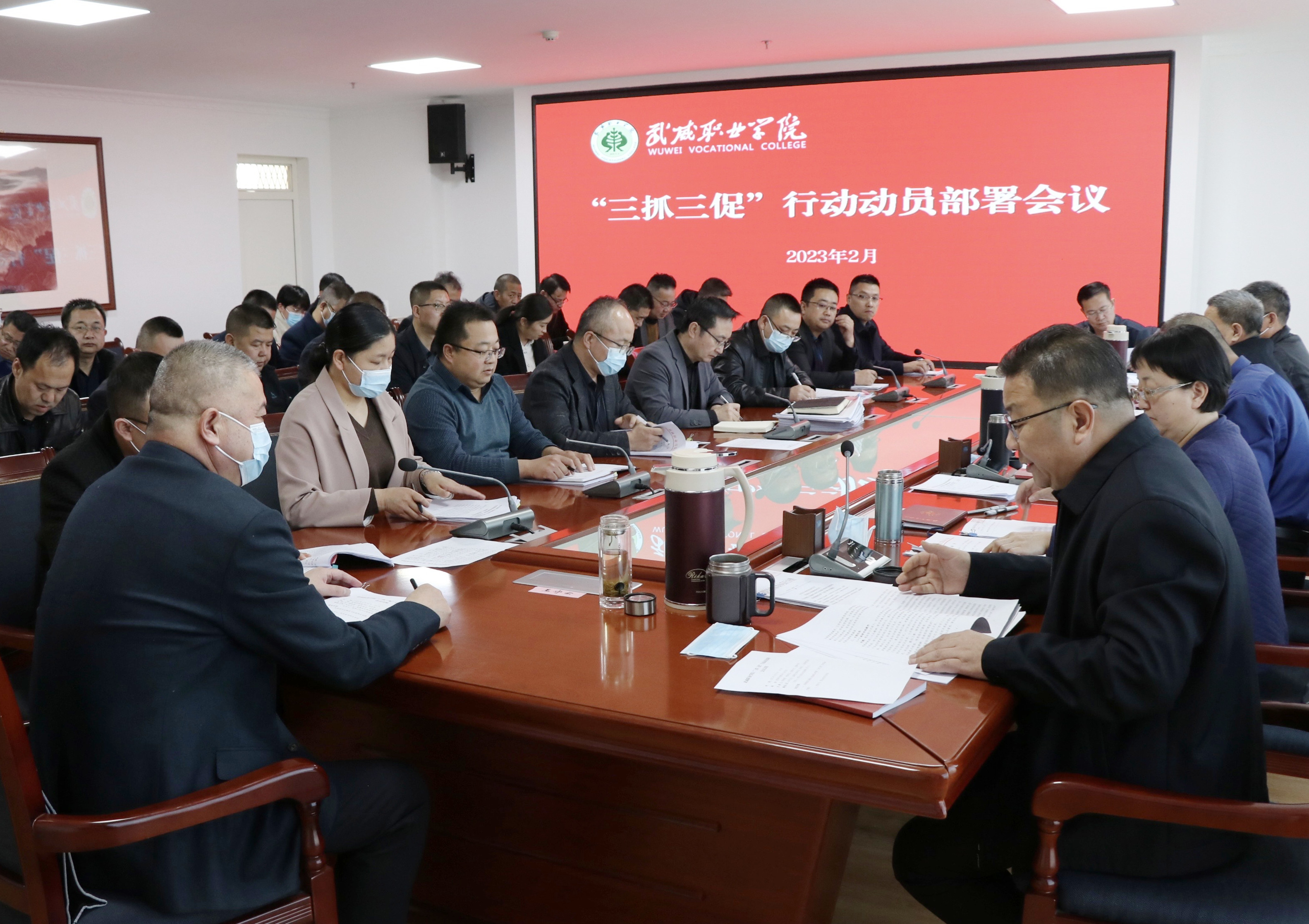 會(huì)議傳達(dá)學(xué)習(xí)了甘肅省、武威市和全省教育系統(tǒng)“三抓三促”行動(dòng)動(dòng)員部署會(huì)議精神,并對學(xué)校開展“三抓三促”行動(dòng)進(jìn)行安排部署。