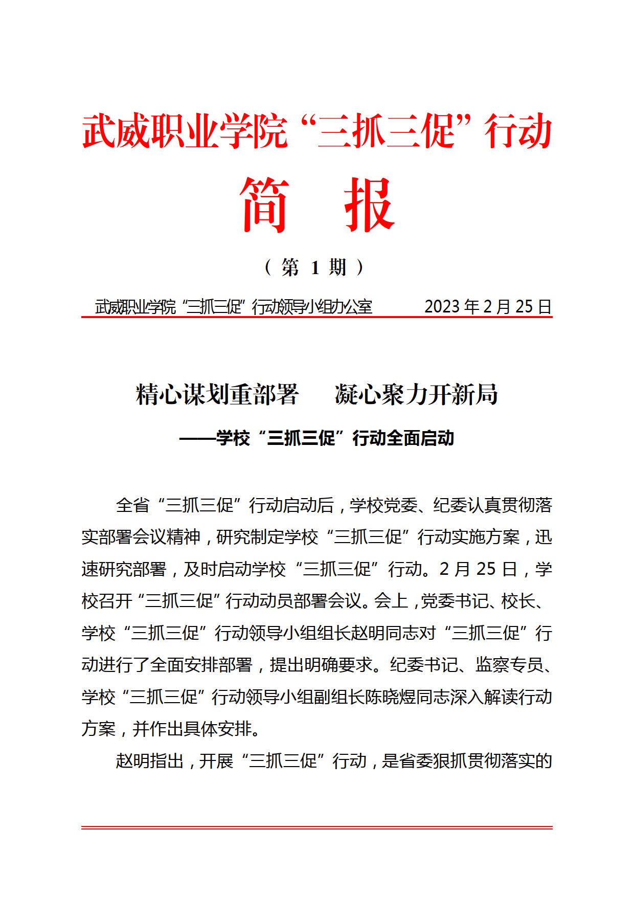 武威職業(yè)學(xué)院“三抓三促”行動簡報(bào)第1期
