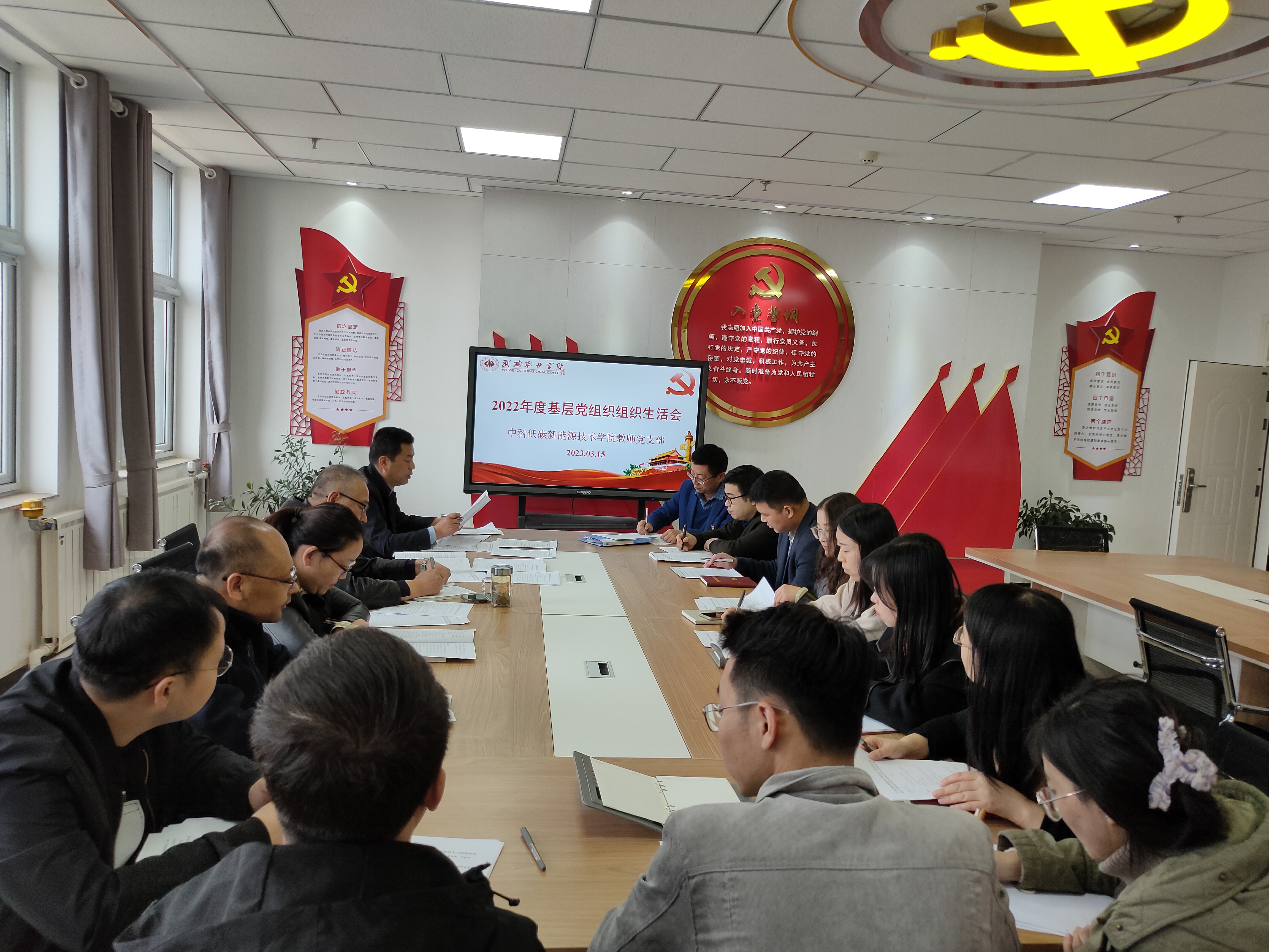 為深入學(xué)習(xí)貫徹黨的二十大精神,堅(jiān)持不懈用習(xí)近平新時(shí)代中國(guó)特色社會(huì)主義思想凝心鑄魂,不斷提升基層黨組織政治功能和組織力,進(jìn)一步激發(fā)黨員充分發(fā)揮先鋒模范作用,按照校黨委統(tǒng)一部署,3月15日下午,中科低碳新能源技術(shù)學(xué)院教師黨支部、學(xué)生黨支部在能源科技樓610、604召開2022年度基層黨組織組織生活會(huì)和開展民主評(píng)議黨員活動(dòng)。會(huì)議由兩個(gè)支部書記主持,支部全體黨員參加,學(xué)校第二督導(dǎo)組成員張世亮、許中璞全程參與督導(dǎo)。