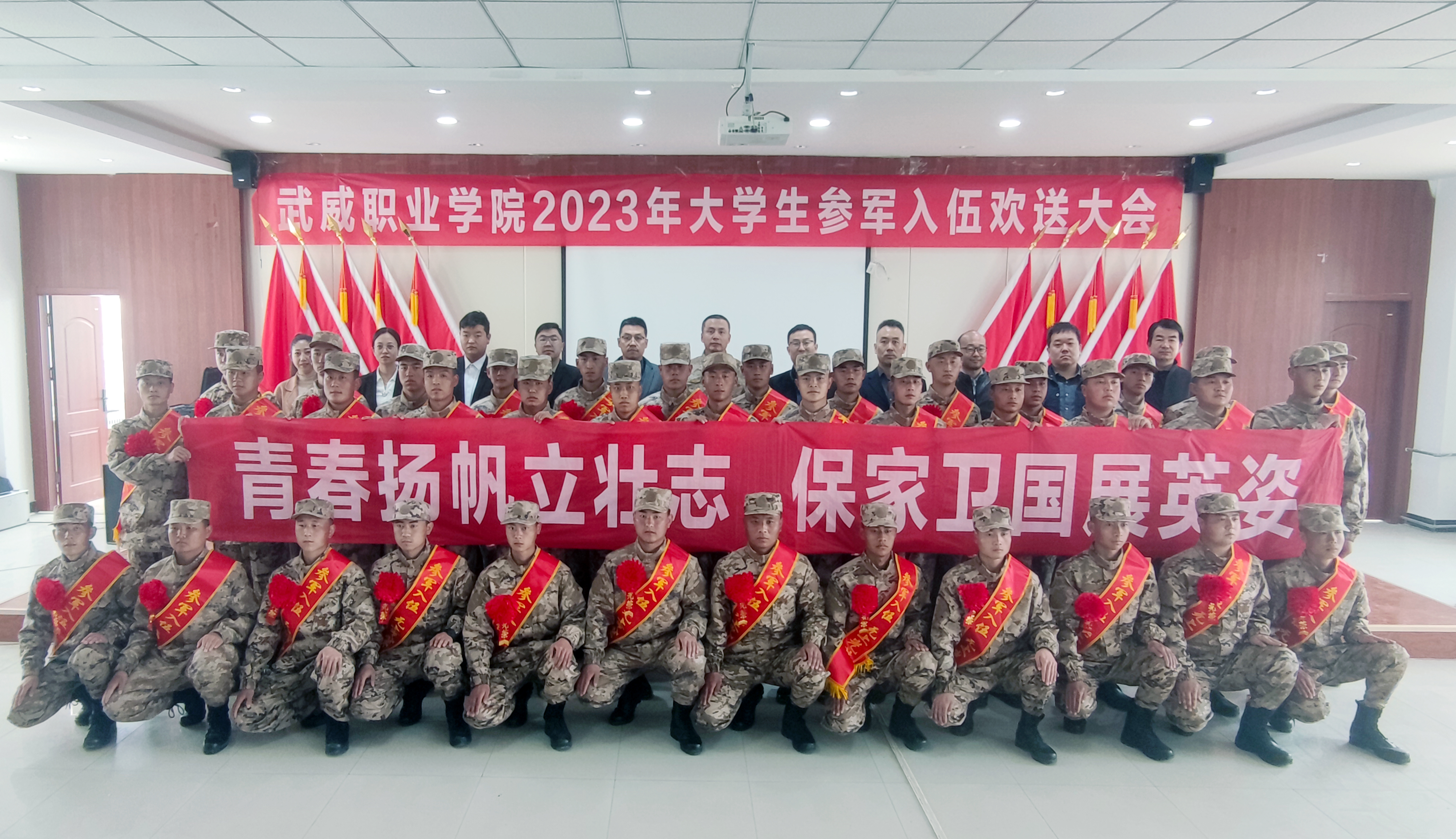 錚錚鐵骨正青春,參軍報(bào)國正當(dāng)時(shí)。3月15日,從學(xué)校報(bào)名入伍的31名大學(xué)生在武南役前教育訓(xùn)練基地整裝待發(fā),即將離開母校奔赴軍營,投身祖國最需要的地方。學(xué)校學(xué)生工作處(武裝部)、招生就業(yè)處負(fù)責(zé)人和各二級(jí)學(xué)院輔導(dǎo)員、班主任代表前往訓(xùn)練基地慰問歡送。涼州區(qū)人民武裝部上校部長金鑫受邀出席歡送大會(huì)并講話。