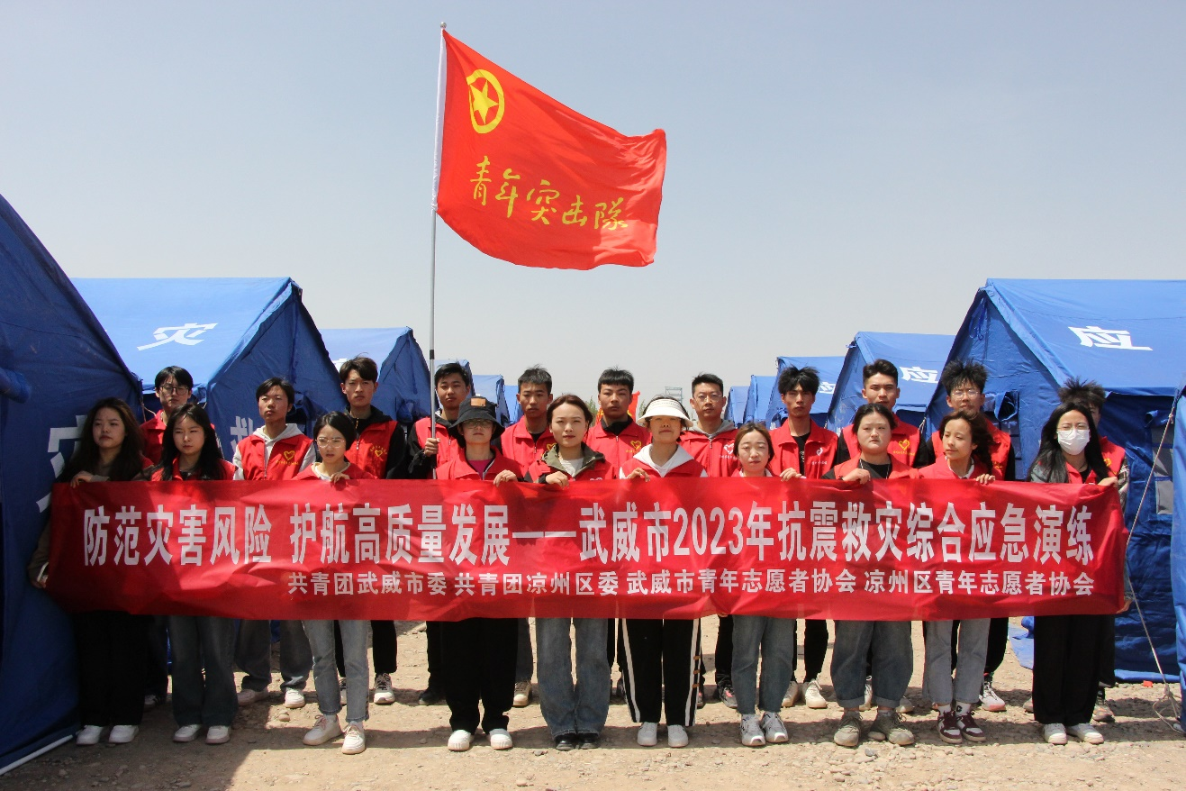 2023年5月6日 為進一步強化學(xué)校安全教育,提高師生安全防范意識和自救自護能力,幫助師生因?qū)o急情況下的有序疏散,最大限度確保師生人生安全,在5月6日上午我院團委攜志愿者參加“隴原礪劍·2023”抗震救災(zāi)實戰(zhàn)演習(xí)武威分演習(xí)暨武威市2023年度抗震救災(zāi)綜合應(yīng)急演練。