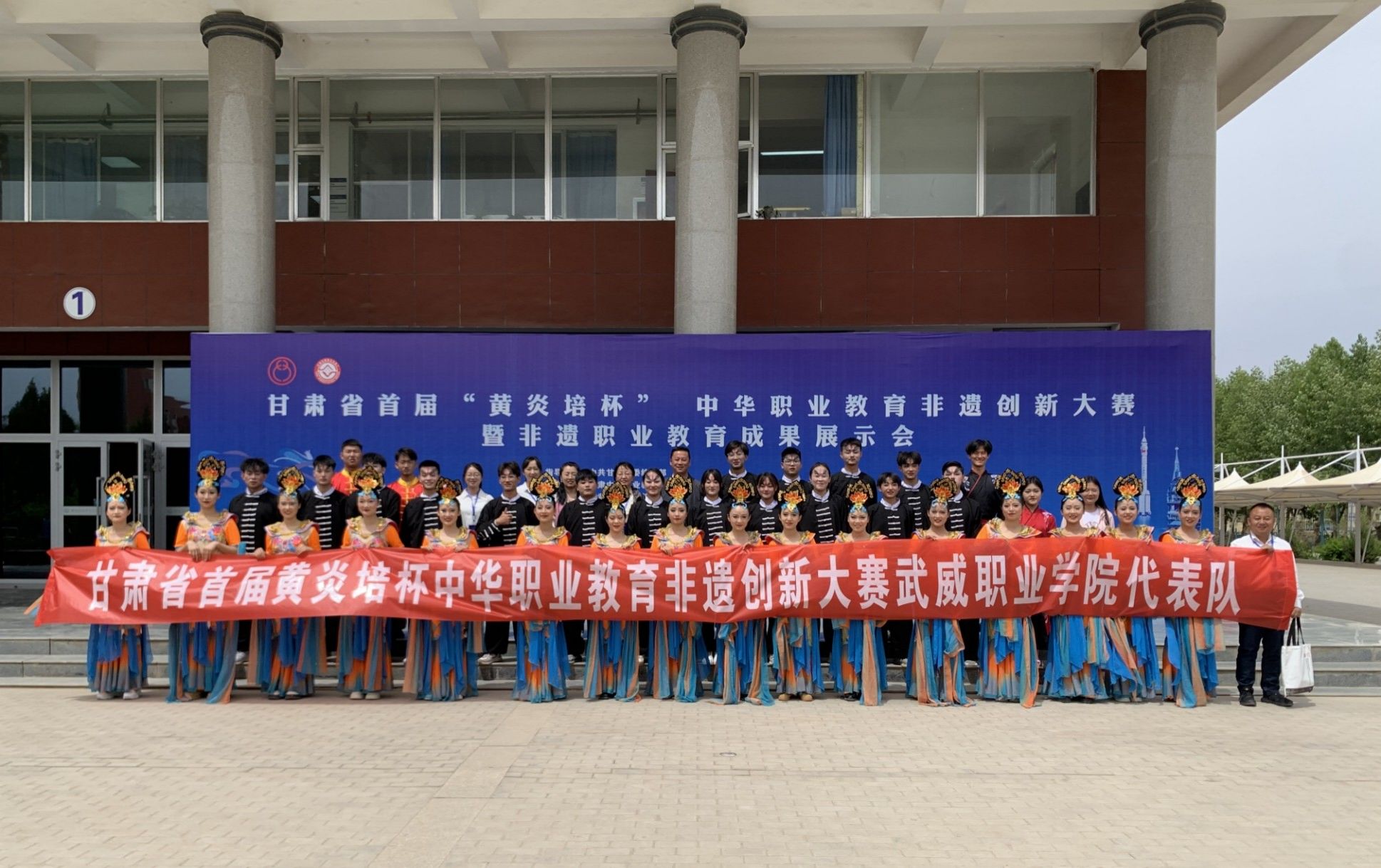 在此次賽會中,我校非遺文化表演作品《西部鼓魂——涼州攻鼓子》獲得一等獎,《西涼樂舞——遙望涼州》獲得三等獎,非遺創(chuàng)新作品《涼州“繩”韻》獲得二等獎?!斗沁z融入中高職一體化人才培養(yǎng)“四模式”育人探索與實踐》《三方聯(lián)動、專創(chuàng)融合、學(xué)演交替——西涼樂舞“3-2-1”非遺傳承人才培養(yǎng)模式探索與實踐》分別獲得中職組和高職組非遺教學(xué)成果獎三等獎,2位教師獲得最佳指導(dǎo)教師獎,學(xué)校榮獲優(yōu)秀組織獎。其中《西部鼓魂——涼州攻鼓子》《西涼樂舞——遙望涼州》入選參加甘肅省首屆“黃炎培杯”中華職業(yè)教育非遺創(chuàng)新大賽暨非遺職業(yè)教育成果展示會專場演出,教師許春華受邀參加甘肅省首屆“非遺賦能職教” 創(chuàng)新發(fā)展論壇,并做主題發(fā)言。學(xué)校的優(yōu)異表現(xiàn)受到中華職教社、甘肅省教育廳等單位領(lǐng)導(dǎo)的高度肯定。