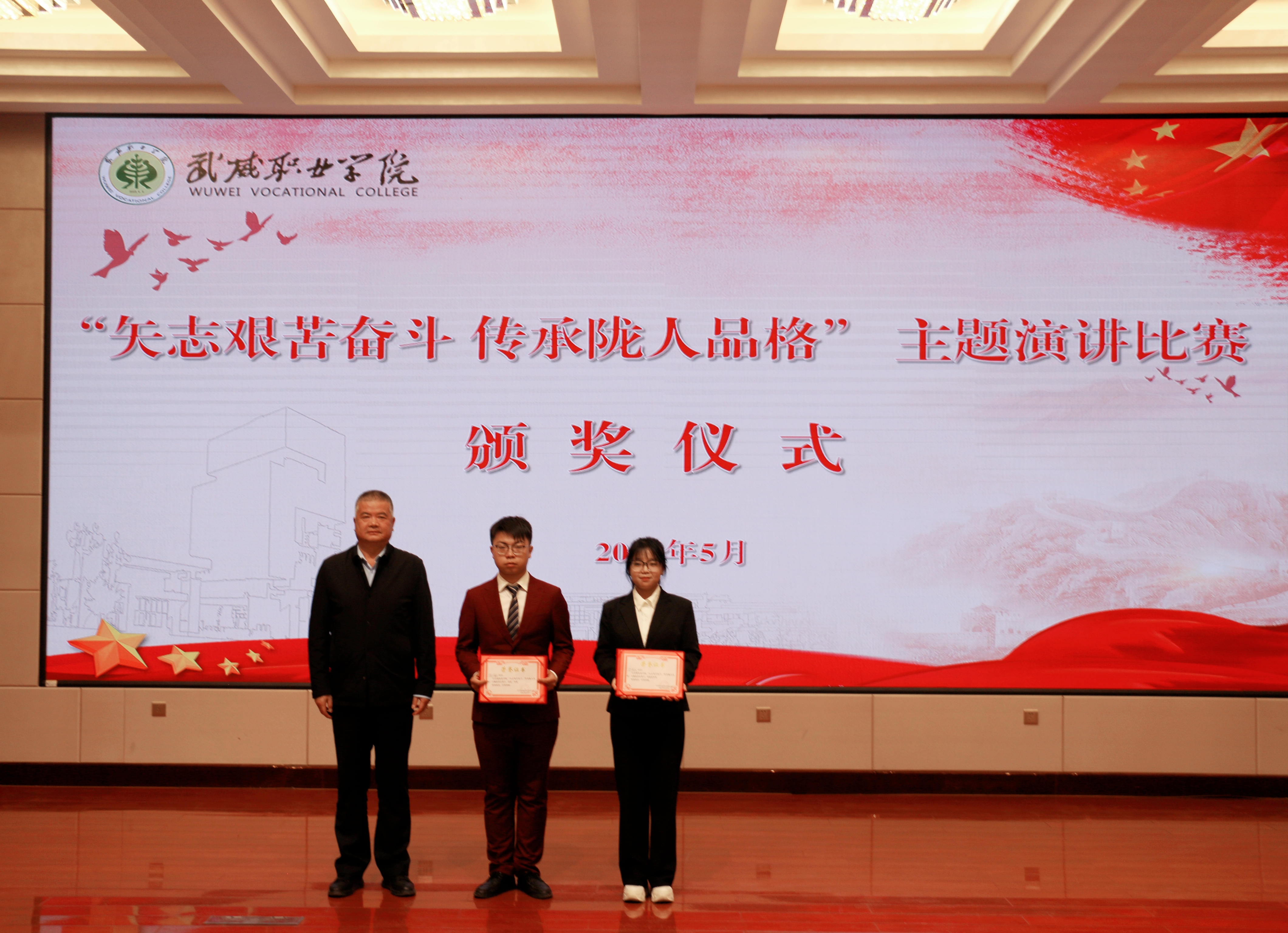 為深入學(xué)習(xí)宣傳貫徹黨的二十大精神,深刻把握習(xí)近平總書記在慶祝中國共產(chǎn)主義青年團成立 100 周年大會上對廣大團員青年提出的“五個模范”的殷切期望,激勵和引領(lǐng)新時代大學(xué)生弘揚甘肅精神和彰顯隴人品格。5月29日,學(xué)校團委在菁英廳舉辦“矢志艱苦奮斗 傳承隴人品格”主題演講比賽,學(xué)校黨委委員、副校長王守云出席活動并為獲獎選手頒獎,相關(guān)部門負(fù)責(zé)人和各二級學(xué)院團委書記及學(xué)生代表200余人現(xiàn)場觀看比賽。