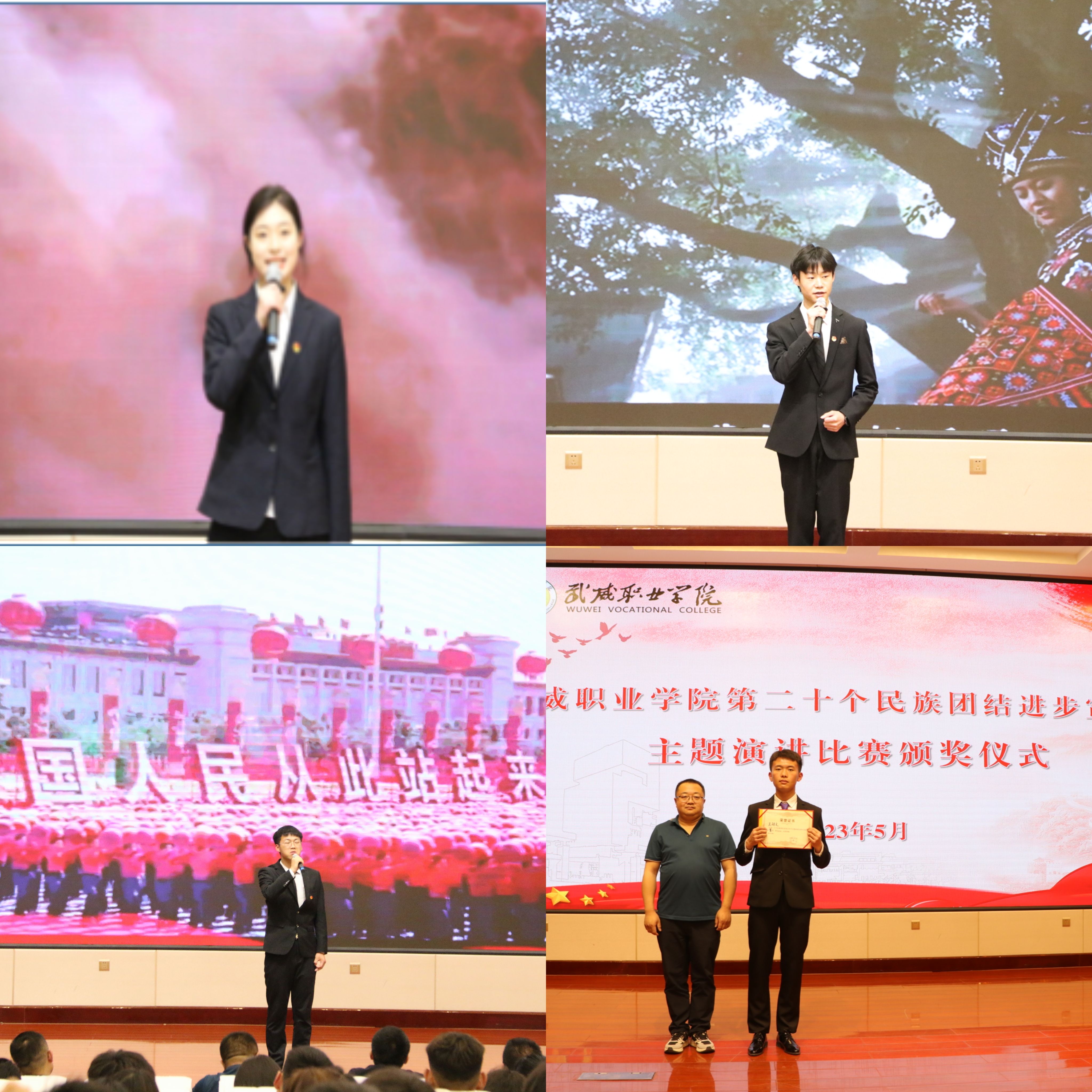 每位參賽選手都激情飽滿地進(jìn)行了演講。他們有的從歷史上有名的涼州會盟等故事,講述民族團(tuán)結(jié)的重要性;有的選取當(dāng)今援疆支教人物典型,道出各族人民相濡以沫的親情。在選手們慷慨激昂的演講聲中,同學(xué)們不由得鼓起一陣又一陣熱烈的掌聲。
