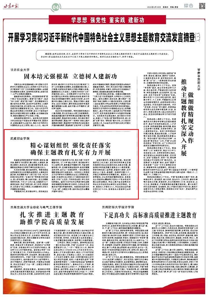 甘肅日報(bào)刊登學(xué)院在省屬高校主題教育工作座談會上的發(fā)言