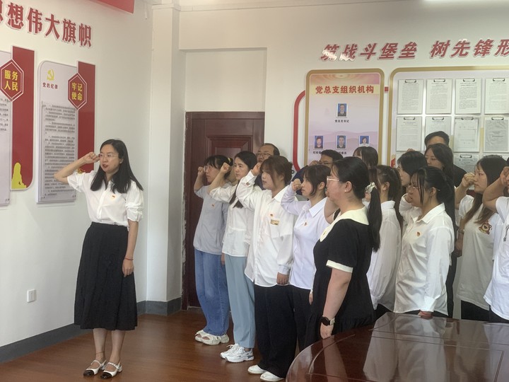 教師黨員趙文杰帶領(lǐng)全體預(yù)備黨員進行入黨宣誓,全體老黨員重溫入黨誓詞。黨員們集體面向黨旗,舉起右拳,跟隨領(lǐng)誓人宣誓,鄭重許下對黨的承諾,表達著自己為共產(chǎn)主義事業(yè)奮斗終身的決心。每位黨員都接受了一次深刻的思想洗禮,更加明確了新時代黨員的責(zé)任擔當。