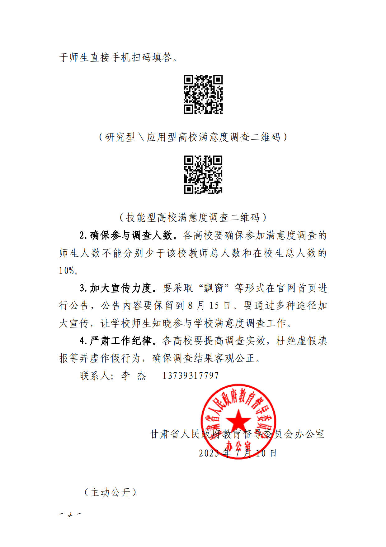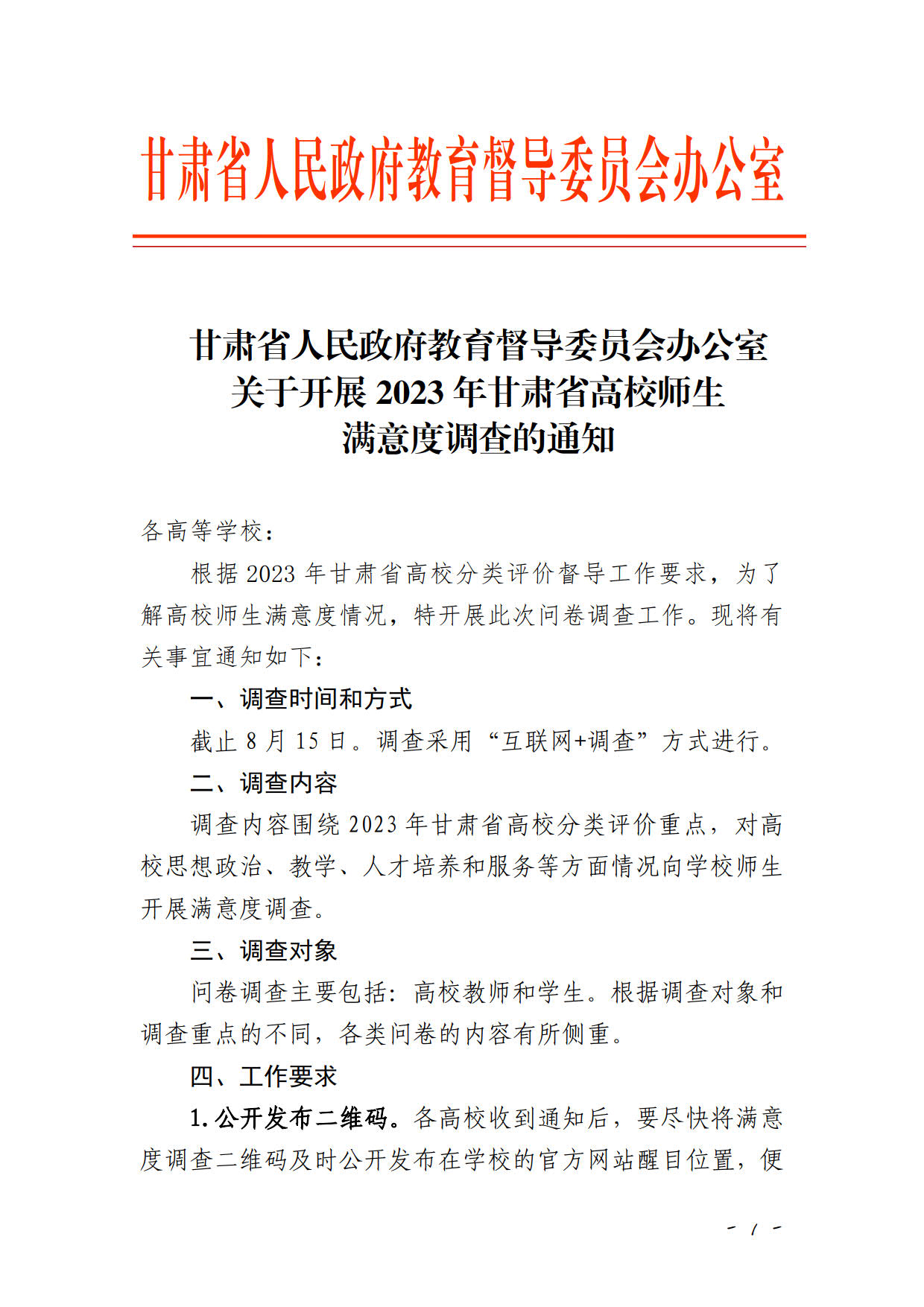 甘肅省人民政府教育督導委員會辦公室關于開展 2023年甘肅省高校師生滿意度調(diào)查的通知