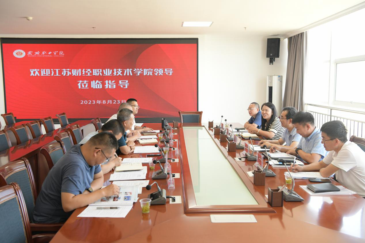趙明代表學(xué)校對程淮中一行的到訪表示歡迎,對學(xué)校發(fā)展歷程、辦學(xué)理念、校企合作、特色亮點(diǎn)和辦學(xué)成效等情況進(jìn)行了介紹。占發(fā)禹就經(jīng)濟(jì)管理學(xué)院會計(jì)實(shí)務(wù)技能大賽的備賽情況向與會人員作了簡要匯報(bào)。程淮中表示武威職業(yè)學(xué)院辦學(xué)歷史悠久,定位清晰,特色鮮明,發(fā)展?jié)摿Υ螅瑢W(xué)校發(fā)展和會計(jì)實(shí)務(wù)技能大賽準(zhǔn)備情況表示贊賞和肯定,并圍繞“現(xiàn)代產(chǎn)業(yè)學(xué)院助力職業(yè)教育高質(zhì)量發(fā)展”分享了自己的經(jīng)驗(yàn)想法。王守云表示雙方要加強(qiáng)交流與合作,互學(xué)互鑒,互促互進(jìn),共同為職業(yè)教育高質(zhì)量發(fā)展作出新貢獻(xiàn)。