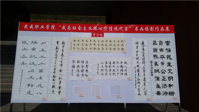 本次大賽自4月啟動(dòng)以來,共收到來自全院學(xué)生的370余件作品,分為軟筆書法、硬筆書法、繪畫、攝影、手工五大類。經(jīng)過篩選有137件作品進(jìn)入復(fù)賽,作品緊扣社會(huì)主義核心價(jià)值觀主題,以生動(dòng)的藝術(shù)形象、藝術(shù)形式展示社會(huì)主義核心價(jià)值觀。院團(tuán)委邀請(qǐng)人文教育藝術(shù)系的藍(lán)明東、祁小剛、趙向峰、薛媛、蘆曉鵬教師組成評(píng)審小組,對(duì)參賽作品分組評(píng)審,評(píng)選出一等獎(jiǎng)4名,二等獎(jiǎng)7名,三等獎(jiǎng)9名,優(yōu)秀獎(jiǎng)15名。獲獎(jiǎng)作品在學(xué)院大學(xué)生活動(dòng)中心、武威職業(yè)學(xué)院團(tuán)青微信公眾平臺(tái)同時(shí)展出。