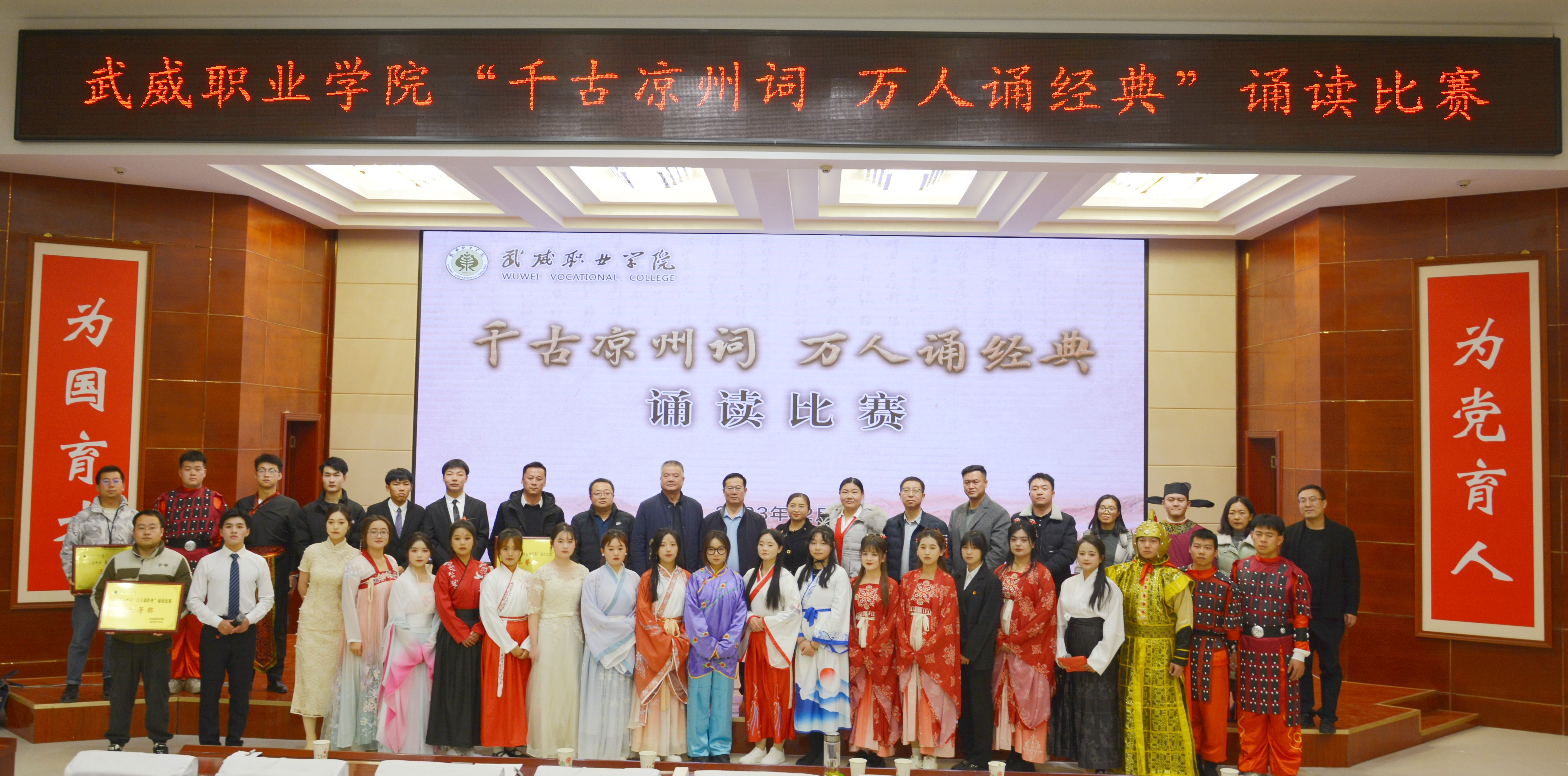 學(xué)校堅(jiān)持“以文育人、以文化人”,圍繞“傳承涼州文脈,賦能文化自信”主題,以中華優(yōu)秀傳統(tǒng)文化為底蘊(yùn)基石,以涼州文化為重要依托,打造出一系列根植地域文化的校園特色文化品牌活動(dòng),多舉措豐富文化育人內(nèi)涵,推動(dòng)文化育人提質(zhì)增效,激勵(lì)武職學(xué)子凝心聚力續(xù)寫(xiě)涼州豪放詞,篤定前行再譜武職新華章,全力為學(xué)校發(fā)展貢獻(xiàn)青春力量!