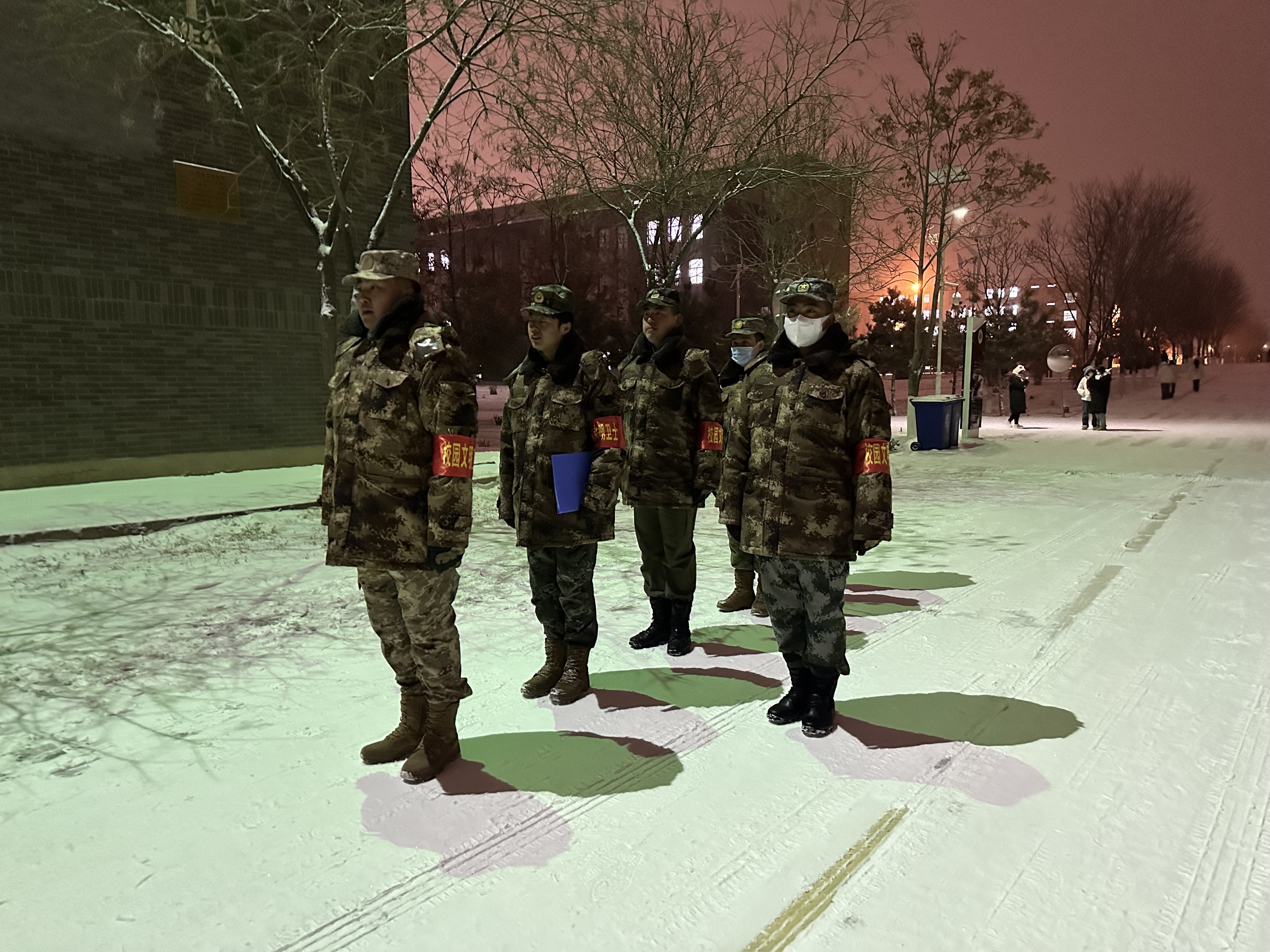 進入11月份以后,天氣越發(fā)的寒冷,但他們卻一如既往堅守著自己的崗位,持續(xù)奉獻著自己的光和熱,“寒風(fēng)裂征衣,飛雪裹戰(zhàn)袍”,文明校園護衛(wèi)隊勇?lián)姑鼪_鋒在前,成為了校園里一道特別的風(fēng)景,從校服到軍裝,再從軍裝到校服,在大學(xué)生和軍人的角色轉(zhuǎn)換中,他們用青春擔當,為“不負戎裝 不負青春”的誓言激情添彩。