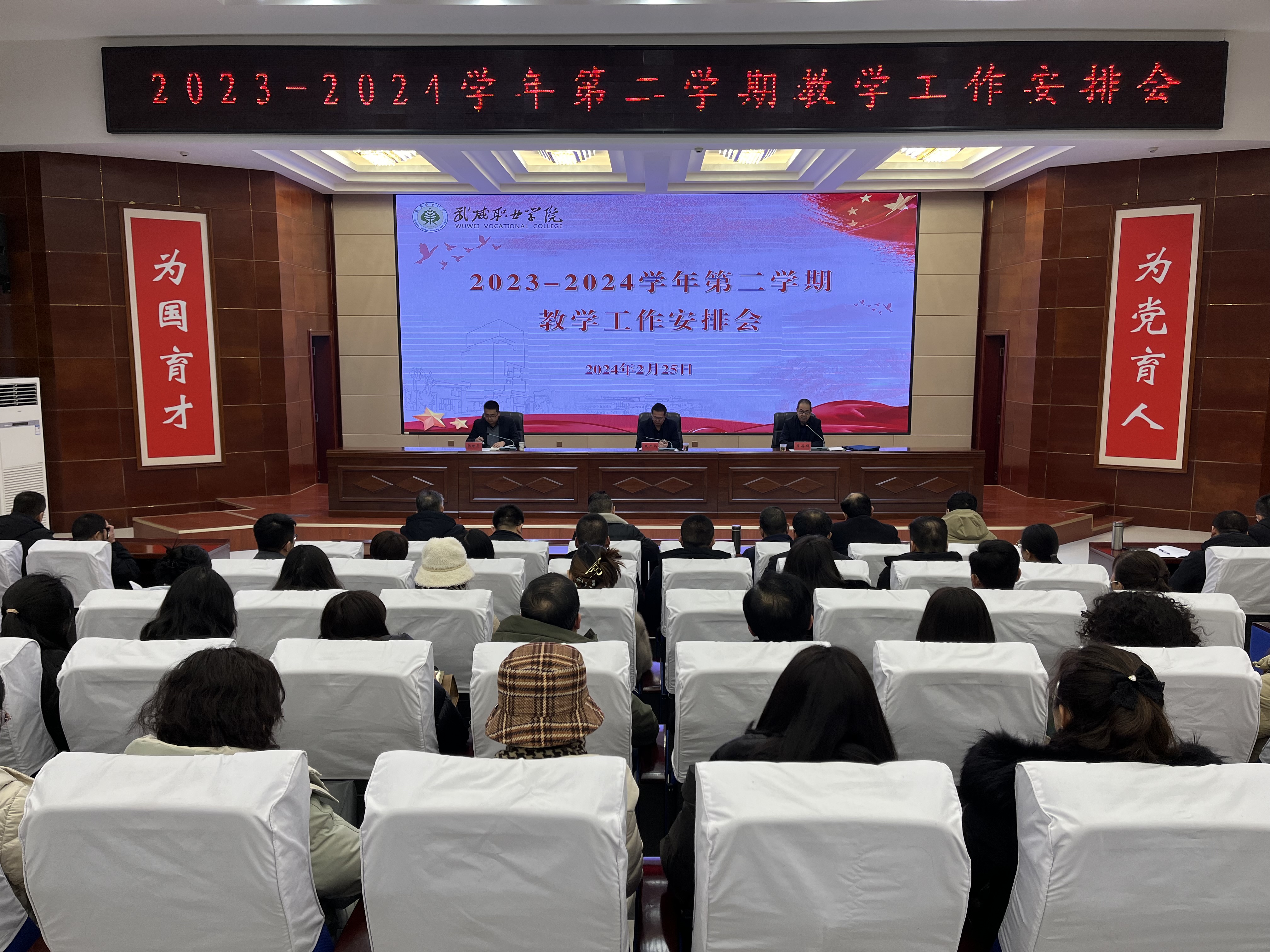 為持續(xù)推動(dòng)教學(xué)運(yùn)行與管理規(guī)范化、標(biāo)準(zhǔn)化、科學(xué)化,進(jìn)一步提升新學(xué)期教學(xué)工作成效和人才培養(yǎng)質(zhì)量,扎實(shí)推進(jìn)學(xué)校高質(zhì)量建設(shè),2月25日上午,學(xué)校在菁英廳組織召開(kāi)了2023-2024學(xué)年第二學(xué)期教學(xué)工作安排會(huì)。學(xué)校校長(zhǎng)、黨委副書(shū)記張開(kāi)禮、黨委副書(shū)記翟存祥、各二級(jí)學(xué)院負(fù)責(zé)人、教學(xué)秘書(shū)、教研室主任、各專(zhuān)業(yè)帶頭人和教務(wù)處全體工作人員參加了會(huì)議。會(huì)議由翟存祥主持。