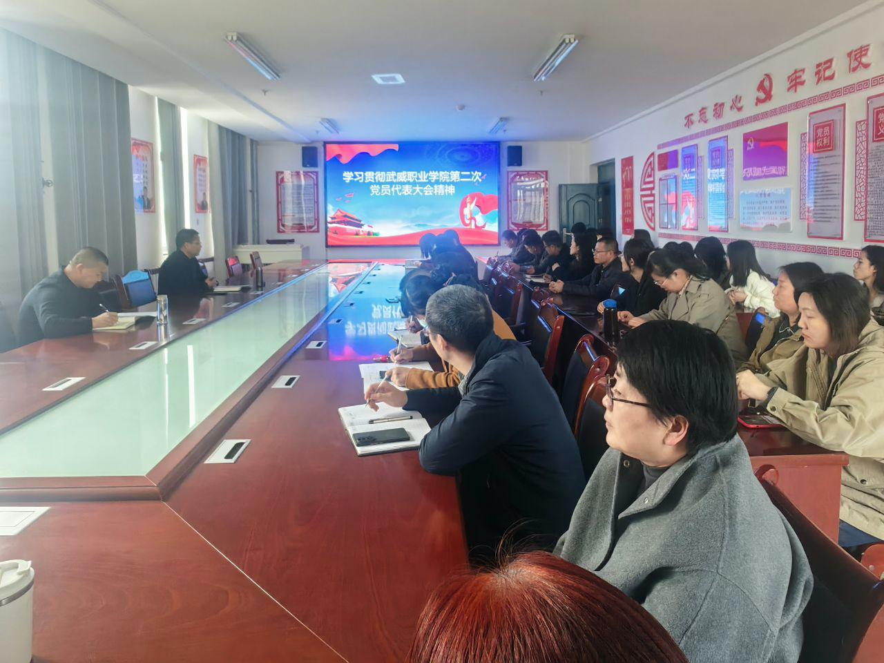 會議強(qiáng)調(diào),全院教職工要深刻領(lǐng)悟?qū)W校第二次黨代會報告的精神內(nèi)涵,把思想行動統(tǒng)一到學(xué)校黨代會確定的目標(biāo)、任務(wù)、舉措上來,圍繞“一個中心”,遵循“一個目標(biāo)”,按照“三個重點”,實施“六個工程”的發(fā)展目標(biāo)踔厲奮發(fā),勇毅前行。在人才培養(yǎng)、專業(yè)建設(shè)、服務(wù)社會等方面,用新舉措開創(chuàng)新局面,為建設(shè)省域內(nèi)一流職業(yè)院校努力奮斗。