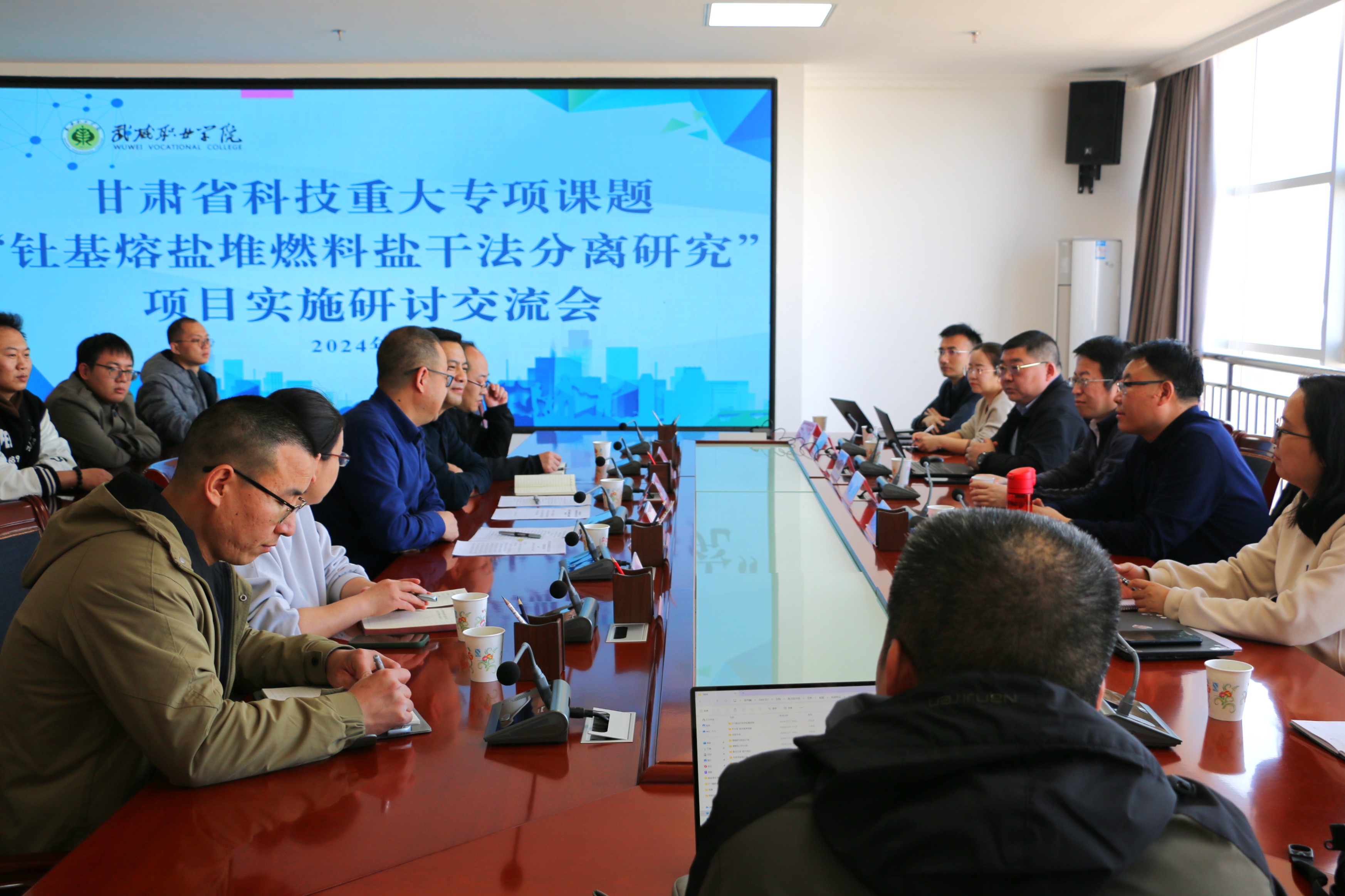 2024年3月11日,甘肅省科技重大專項課題“釷基熔鹽堆燃料鹽干法分離研究”項目實施研討交流會在武威職業(yè)學(xué)院能源科技樓811舉行。中科武威新能源研究所主任趙先堂,中國科學(xué)院上海應(yīng)用物理研究所主任龔昱一行15人,武威職業(yè)學(xué)院黨委副書記翟存祥出席此次會議。項目骨干、武威職業(yè)學(xué)院教師代表約50人參加此次會議。會議由中科低碳新能源技術(shù)學(xué)院副院長黃述杰主持。