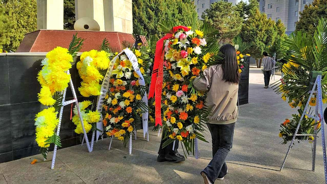 ? ? ?在紀念碑前,參加活動的師生向長眠于地下的英烈們默哀,向革命先烈敬獻花圈。師生有序參觀了烈士紀念館的各個展廳,追憶了解烈士事跡,將其銘刻在自己的血肉魂魄之間。在英雄名錄前,師生們深深鞠躬,無言地表達自己深切的哀思和感恩。