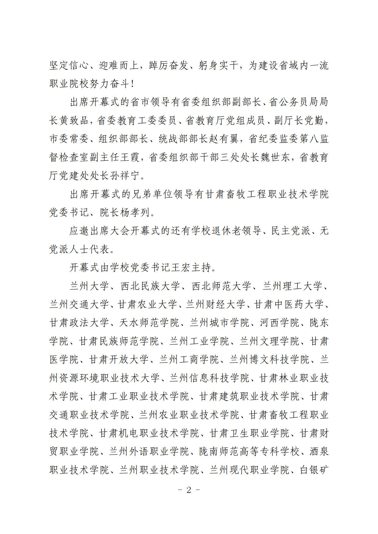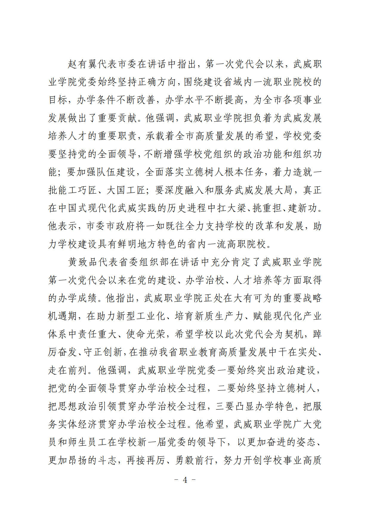 簡報第34期:中國共產(chǎn)黨武威職業(yè)學(xué)院第二次代表大會開幕
