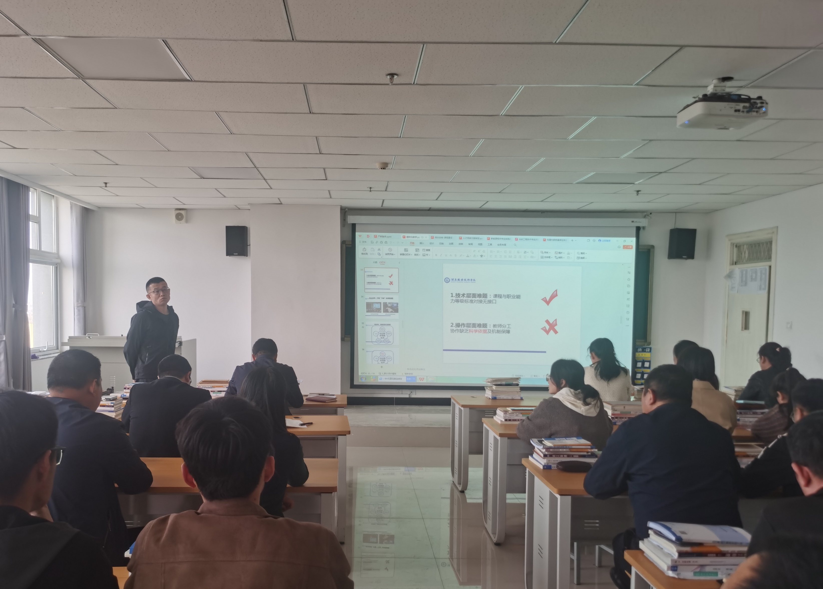 4月12日下午,中科低碳新能源技術學院在能源科技樓612教室召開光伏工程技術專業(yè)骨干教師國培項目培訓匯報暨國家級教師創(chuàng)新團隊高質量發(fā)展研討交流會,光伏工程技術國家級教師創(chuàng)新團隊成員及專業(yè)教師共24人參加會議,會議由學院副院長、國家級教師創(chuàng)新團隊負責人黃述杰主持。
