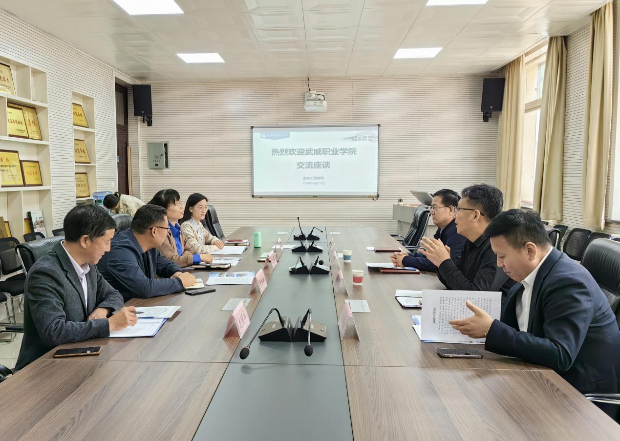 座談會上,王燕詳細(xì)介紹了生物工程學(xué)院基本情況。張開禮介紹了武威職業(yè)學(xué)院發(fā)展基本情況。雙方就專業(yè)建設(shè)、人才培養(yǎng)、實(shí)驗(yàn)實(shí)訓(xùn)建設(shè)、實(shí)習(xí)就業(yè)基地建設(shè)、縱橫向科研項(xiàng)目申報、產(chǎn)業(yè)學(xué)院建設(shè)等方面進(jìn)行了深入探討交流。