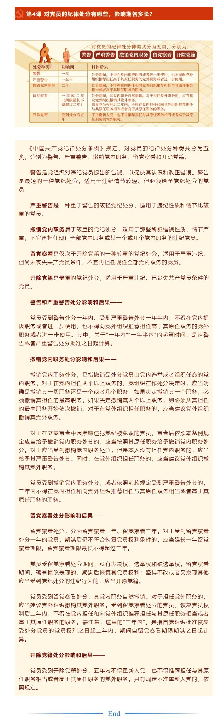 第4課 | 對(duì)黨員的紀(jì)律處分有哪些,影響期各多長(zhǎng)?