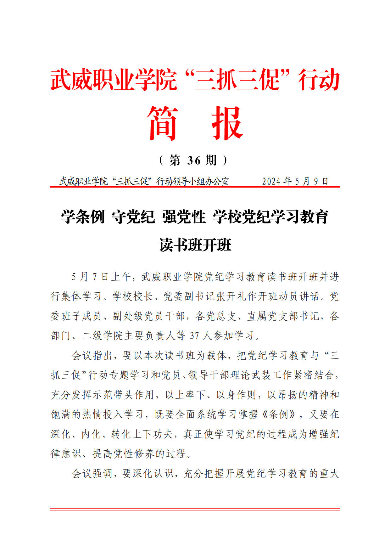 簡報(bào)第36期:學(xué)條例 守黨紀(jì) 強(qiáng)黨性 學(xué)校黨紀(jì)學(xué)習(xí)教育讀書班開班