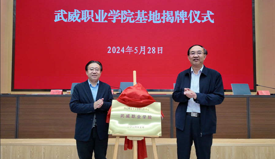 5月28日下午,西北師范大學(xué)中外寫(xiě)作中心武威職業(yè)學(xué)院基地揭牌儀式暨報(bào)告會(huì)在武威職業(yè)學(xué)院能源科技樓一樓學(xué)術(shù)報(bào)告廳隆重舉行。