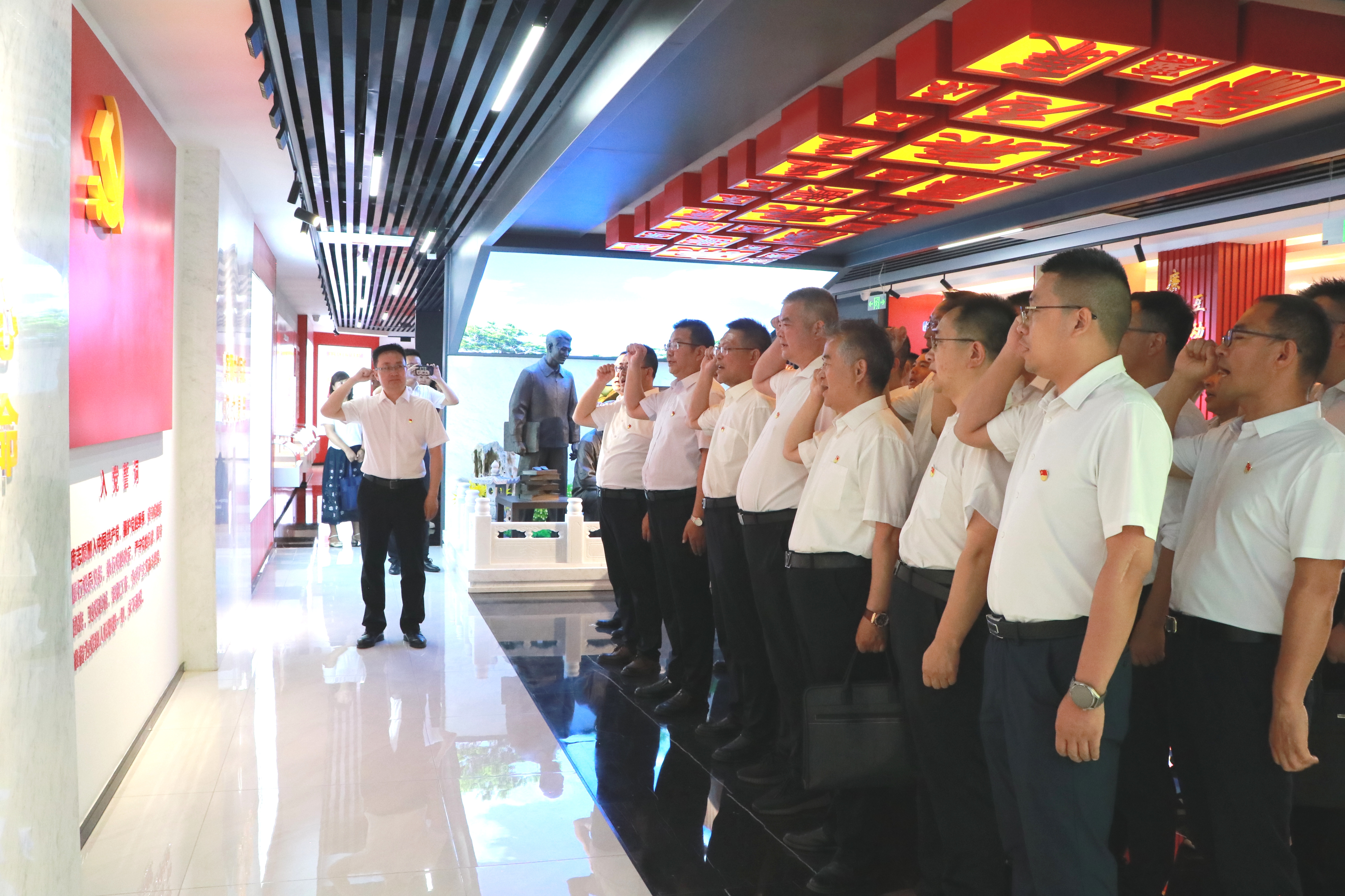 在入黨宣誓大廳,全體黨員干部神情肅穆,整齊列隊(duì),面向鮮紅的黨旗,以飽滿的熱情和昂揚(yáng)的姿態(tài)重溫了入黨時(shí)的錚錚誓言,再一次感受入黨的光榮神圣,再一次經(jīng)受靈魂和黨性的洗禮,表達(dá)為黨的事業(yè)奮斗終身的決心和堅(jiān)定信念。