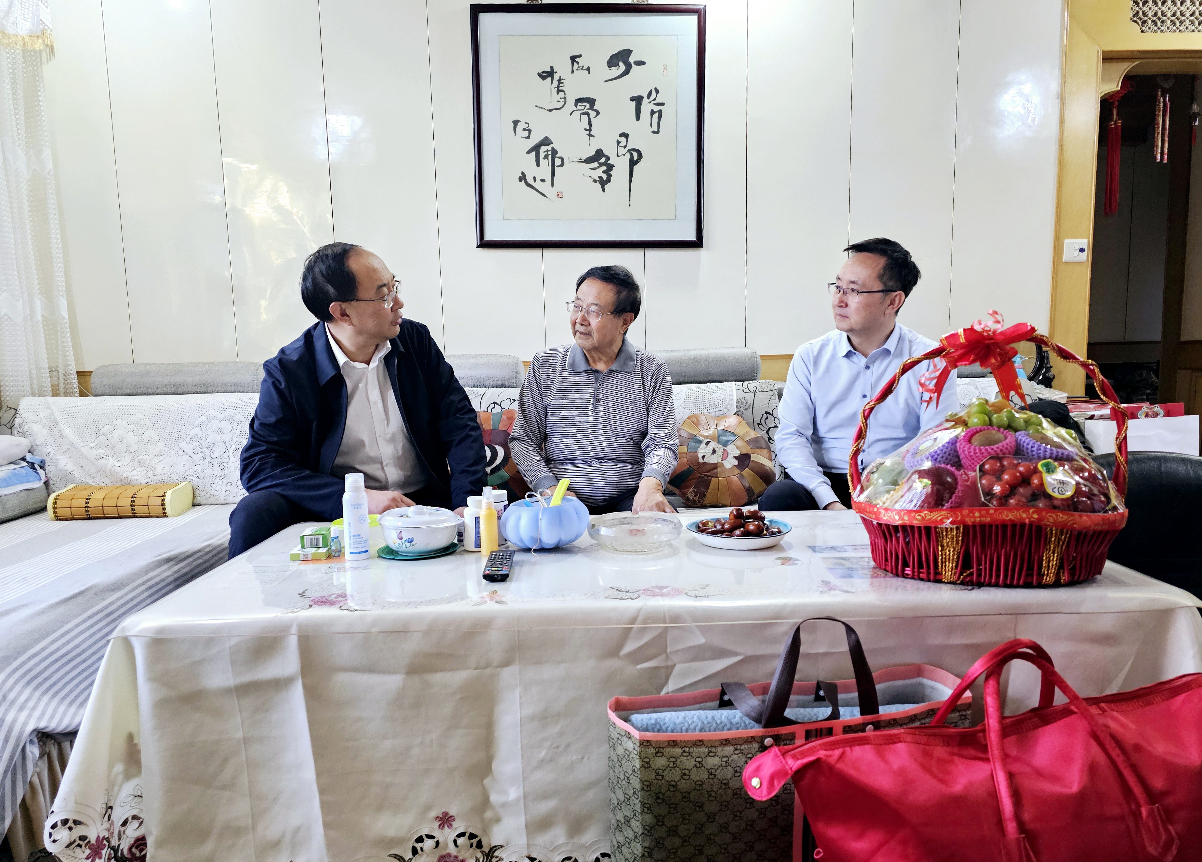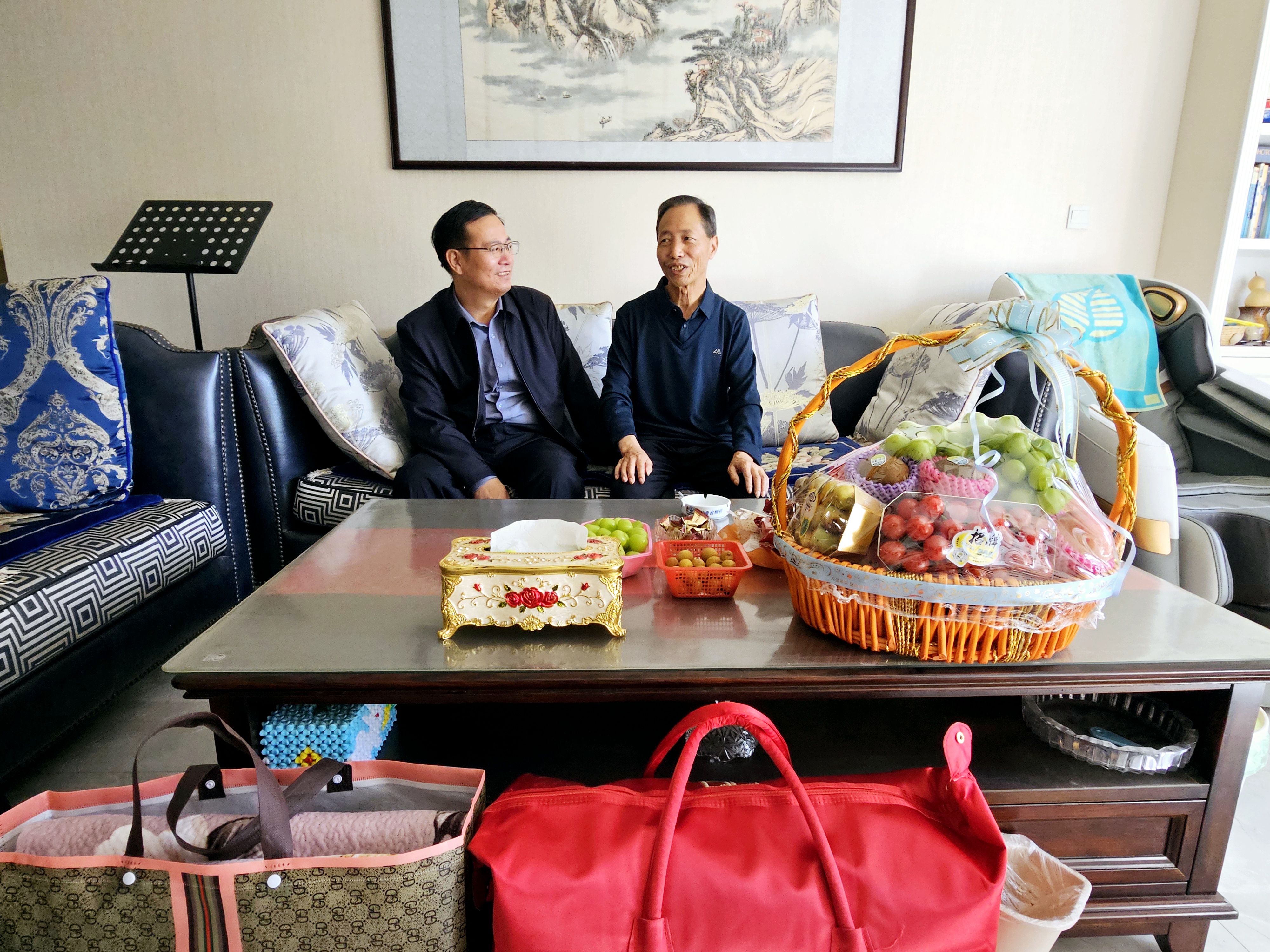 在原黨委書記顏?zhàn)诿骷抑?,黨委書記王宏關(guān)切詢問其身體狀況和生活情況,共話近年來學(xué)校發(fā)展變化,暢談美好發(fā)展愿景,鼓勵(lì)他繼續(xù)發(fā)揮余熱,為學(xué)校發(fā)展建言獻(xiàn)策。