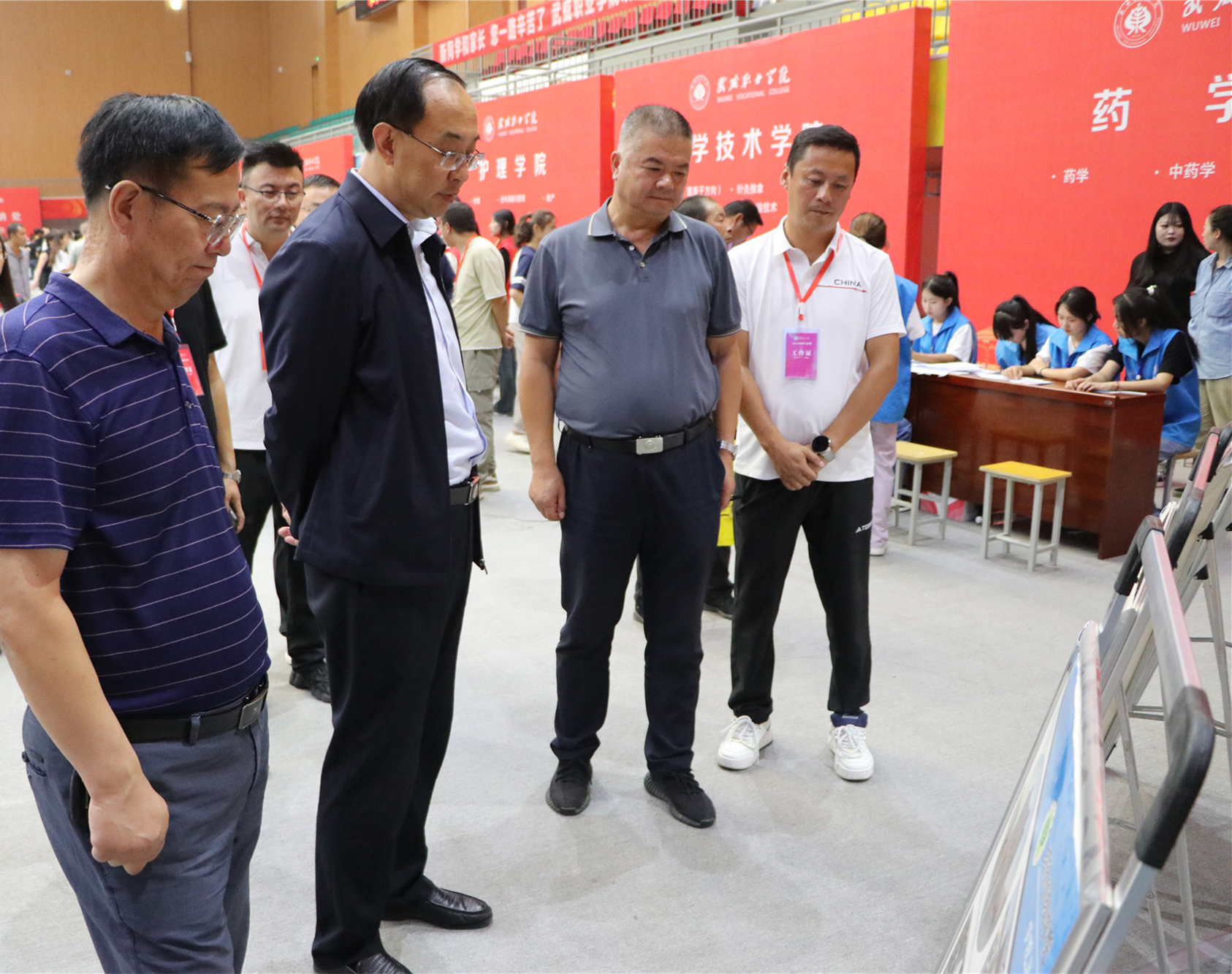 校領(lǐng)導(dǎo)一一走過新生報(bào)到處、綠色通道、繳費(fèi)處和各二級(jí)學(xué)院迎新報(bào)到點(diǎn),了解新生報(bào)到情況,仔細(xì)詢問智慧學(xué)工平臺(tái)使用情況,親切問候堅(jiān)守崗位的師生志愿者。在醫(yī)學(xué)技術(shù)學(xué)院報(bào)到點(diǎn)前,王宏與2024級(jí)放射治療技術(shù)(重離子方向)新生及家長聊了起來——“歡迎你們來到武威職業(yè)學(xué)院學(xué)習(xí)!為什么會(huì)報(bào)考這個(gè)專業(yè)?”在得知學(xué)生家庭中有人從事重離子醫(yī)療領(lǐng)域的研發(fā)工作時(shí),王宏勉勵(lì)新生要努力學(xué)好專業(yè)、練好技能,爭做高素質(zhì)技術(shù)技能人才。在家長休息區(qū),王宏與來自甘肅慶陽的新生家長親切交談,并介紹了學(xué)校的辦學(xué)情況,建議學(xué)生和家長在校園里走一走看一看,多了解熟悉學(xué)校,幫助學(xué)生盡快適應(yīng)大學(xué)生活,并祝愿學(xué)生家長在武期間,一切順利。