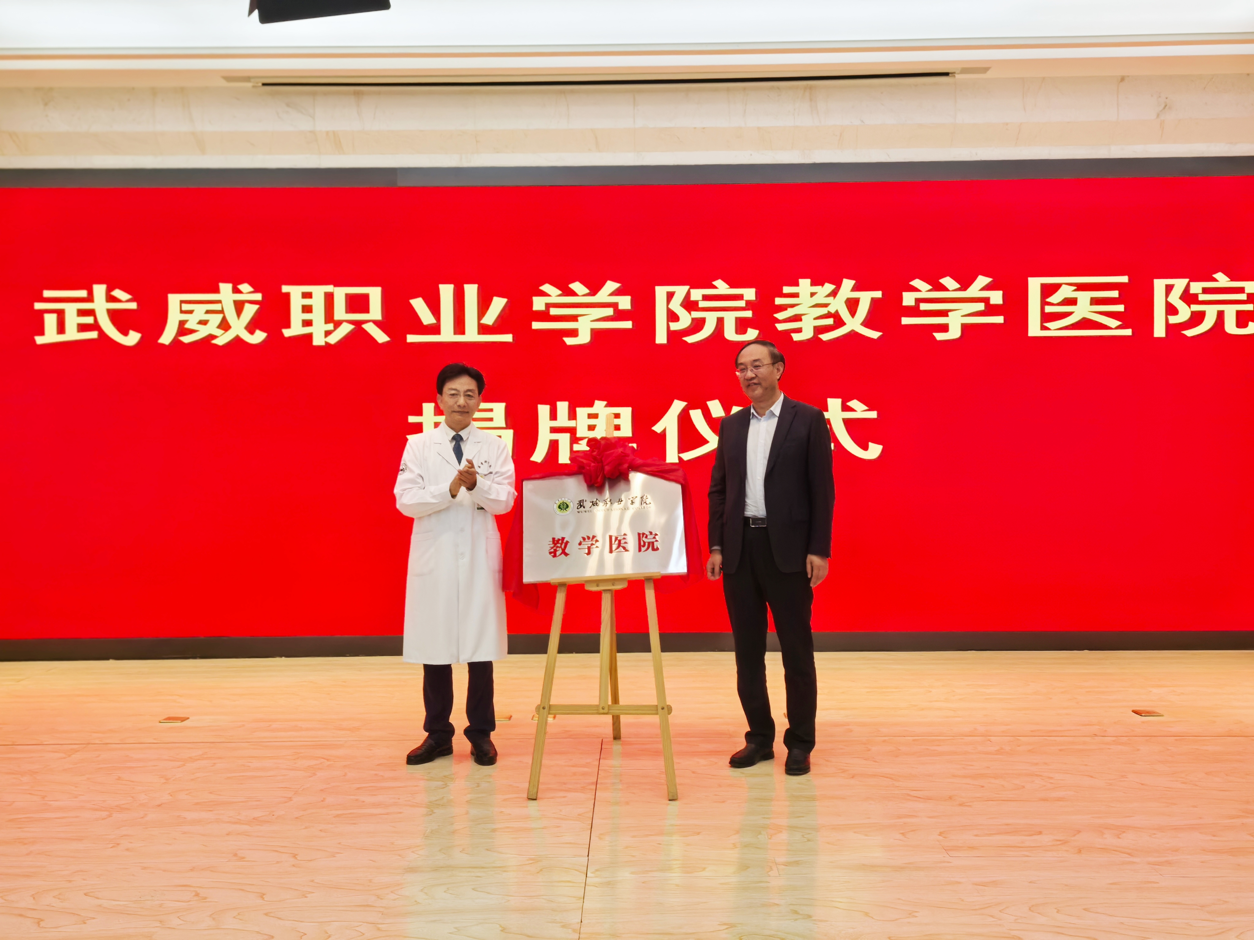 王宏和葉延程為“武威職業(yè)學院教學醫(yī)院”揭牌