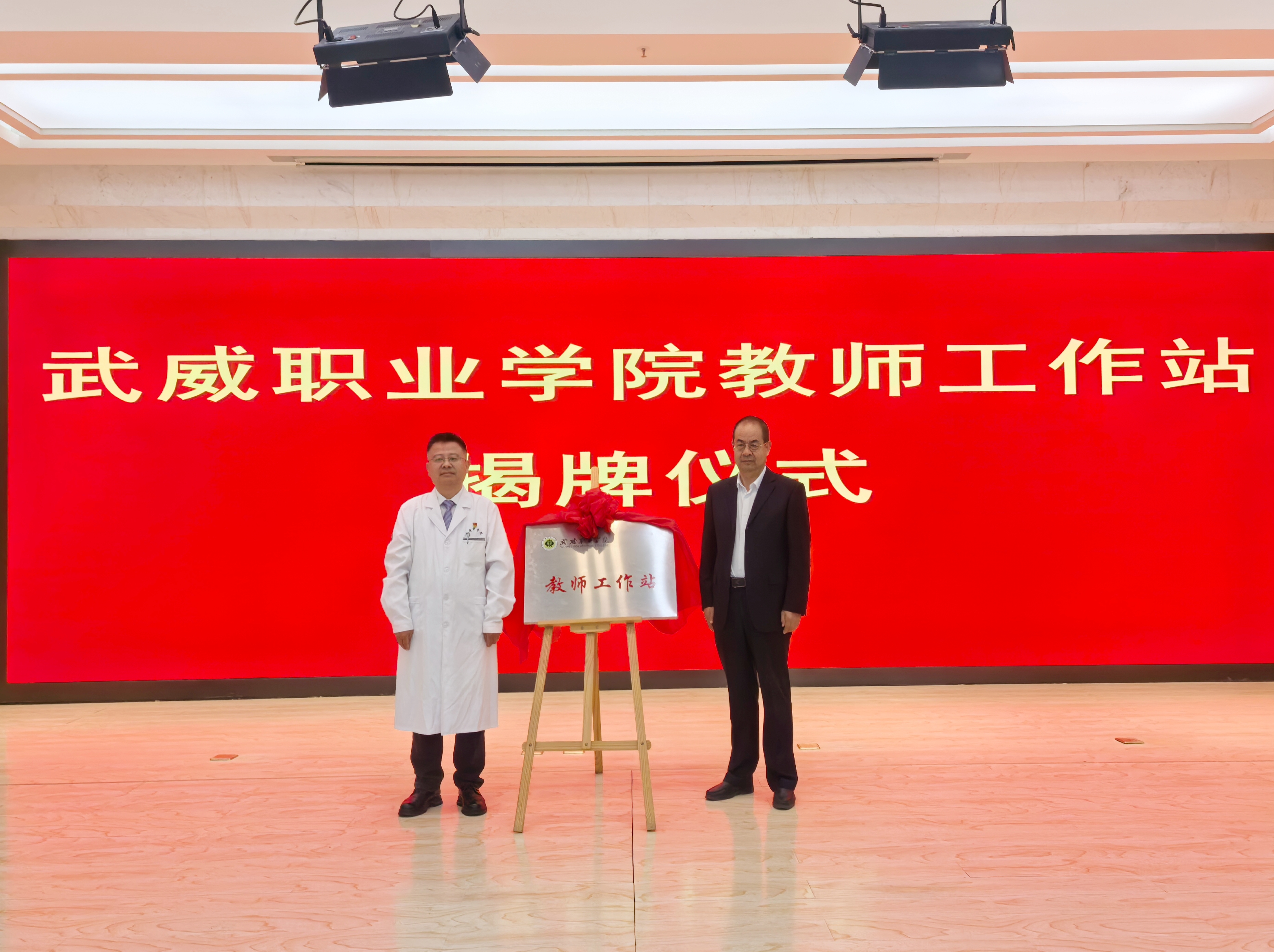 翟存祥和聶蓬為“武威職業(yè)學院教師工作站”揭牌