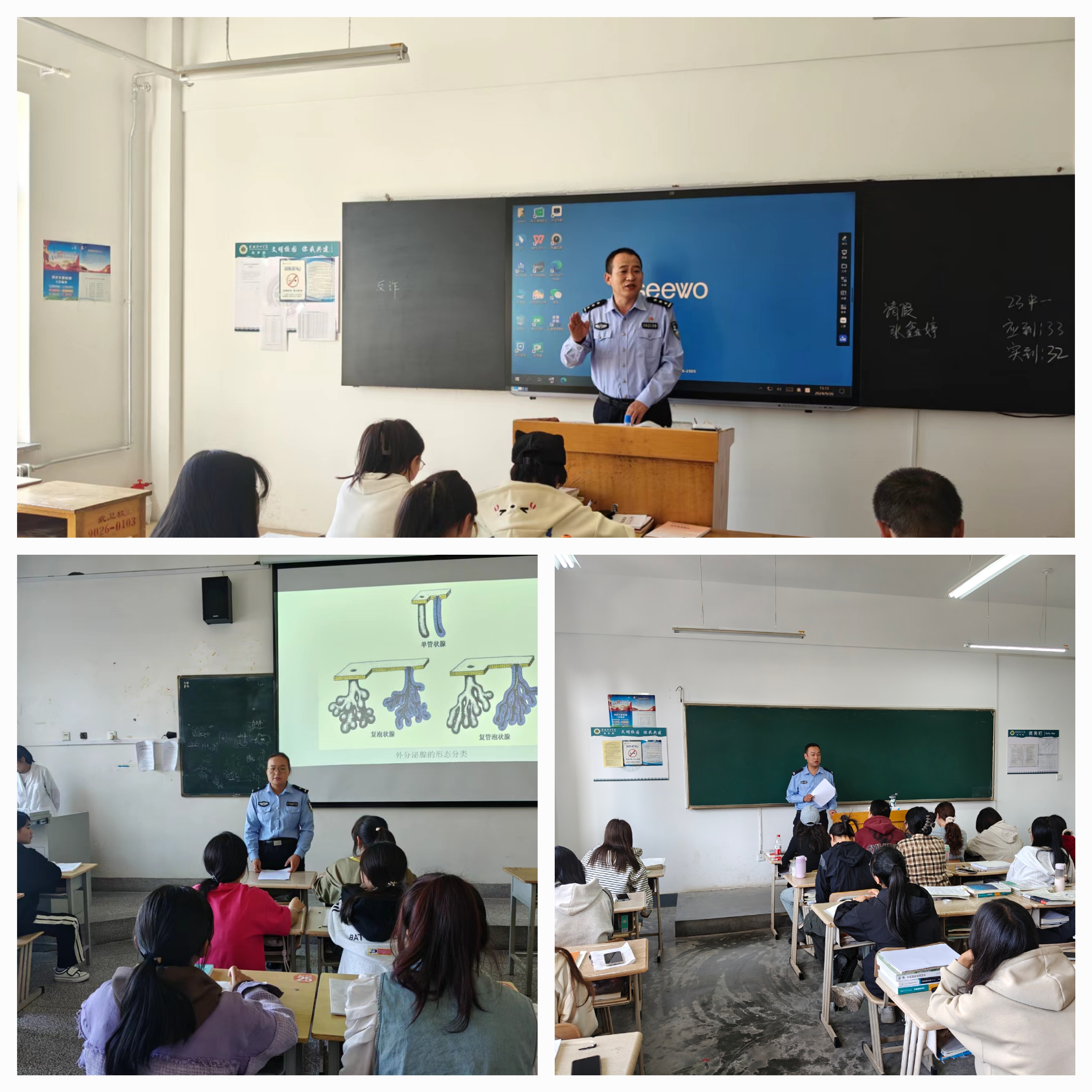 為提高廣大師生識詐、防詐、反詐意識和能力,筑牢師生遠離毒品的安全屏障,有效保護廣大師生的生命財產(chǎn)安全,學(xué)校會同武威市涼州區(qū)西關(guān)街派出所深入開展了反電信詐騙和禁毒知識進課堂講解活動。自9月26日開始,涼州區(qū)西關(guān)街派出所選派10余名公安干警深入到每個教學(xué)班級進行反電信詐騙、禁毒等安全防控知識講解,活動覆蓋學(xué)校所有師生。